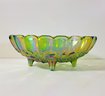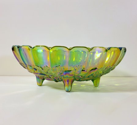Indiana Carnival Glass Green Iridescent Harvest Oval Centerpiece Bowl