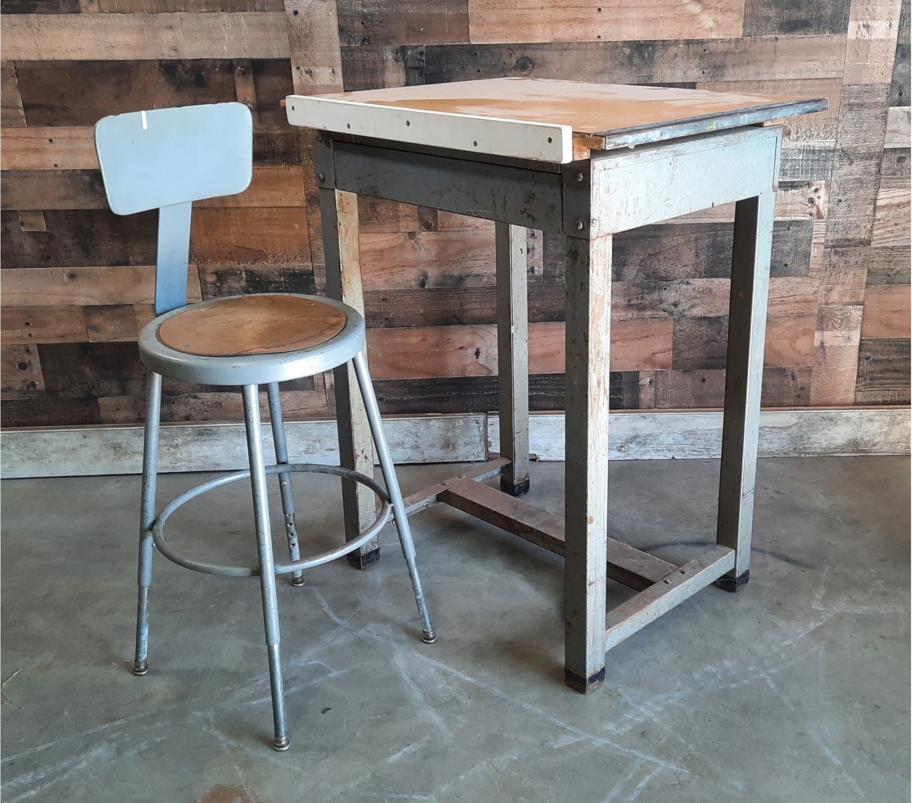 Industrial Drafting Table And Metal Stool