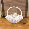 A beautiful ruffled edge, collectible glass basket with the original tag and box.