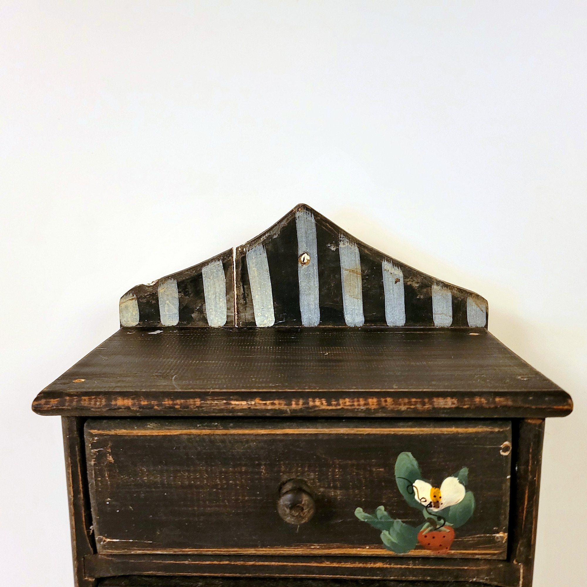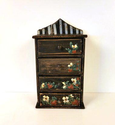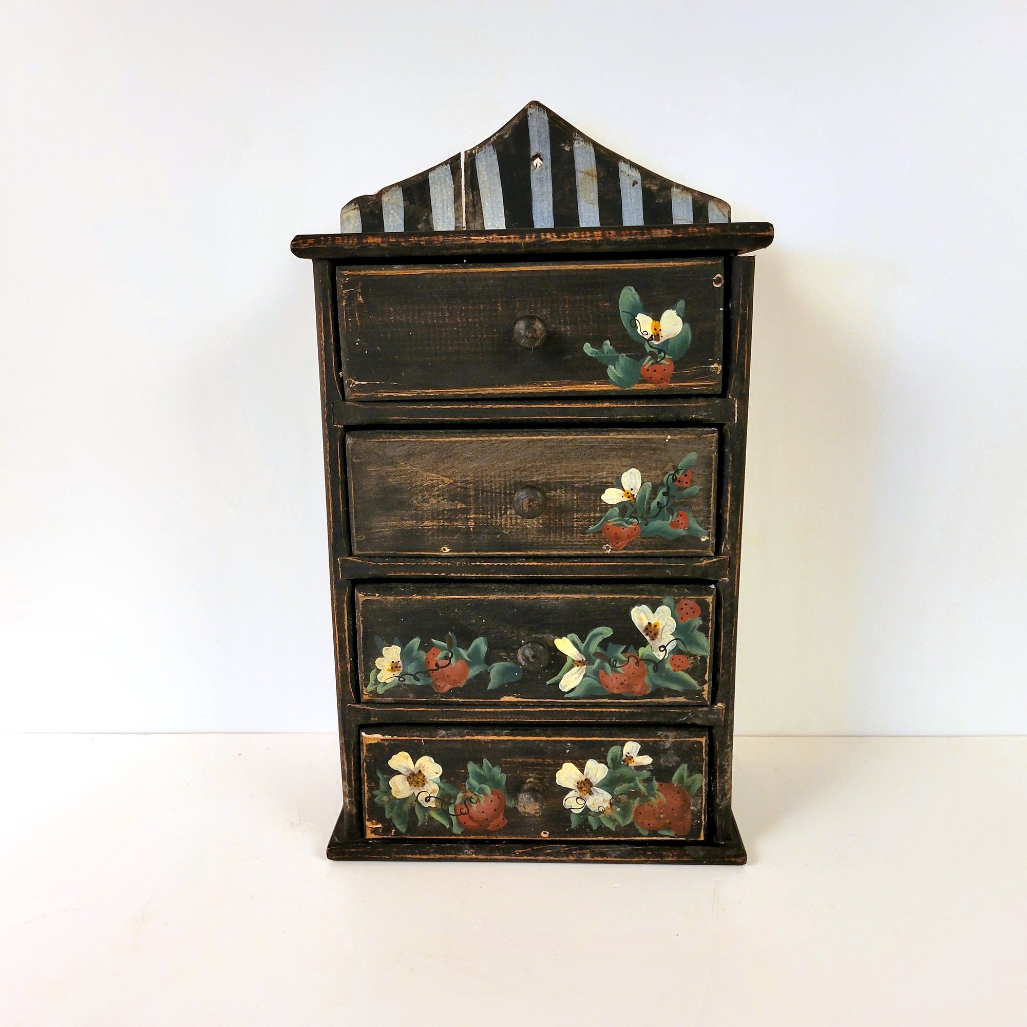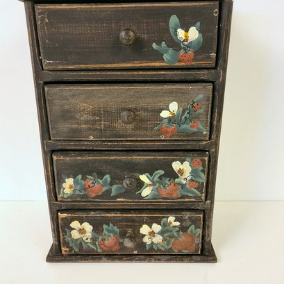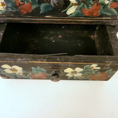Folk Art Wood Cabinet with Strawberry Design