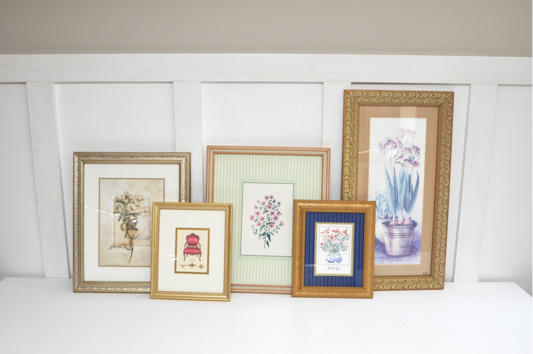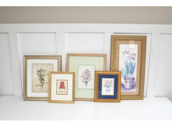 A large lot of mostly floral framed prints. The frames have some wear and tear and there are some marks under the glass.