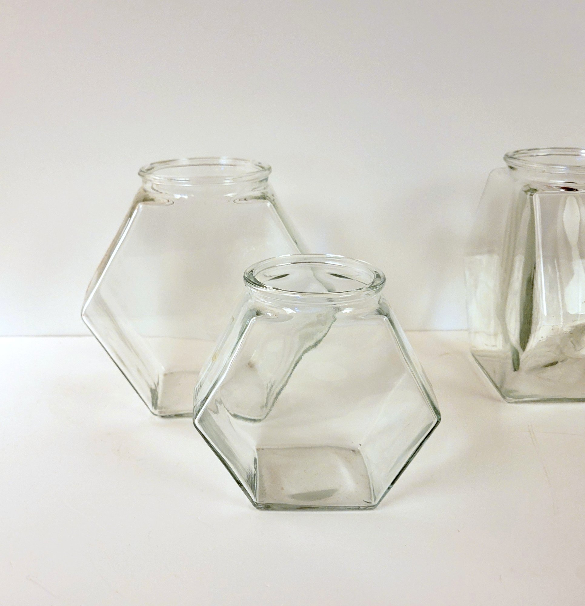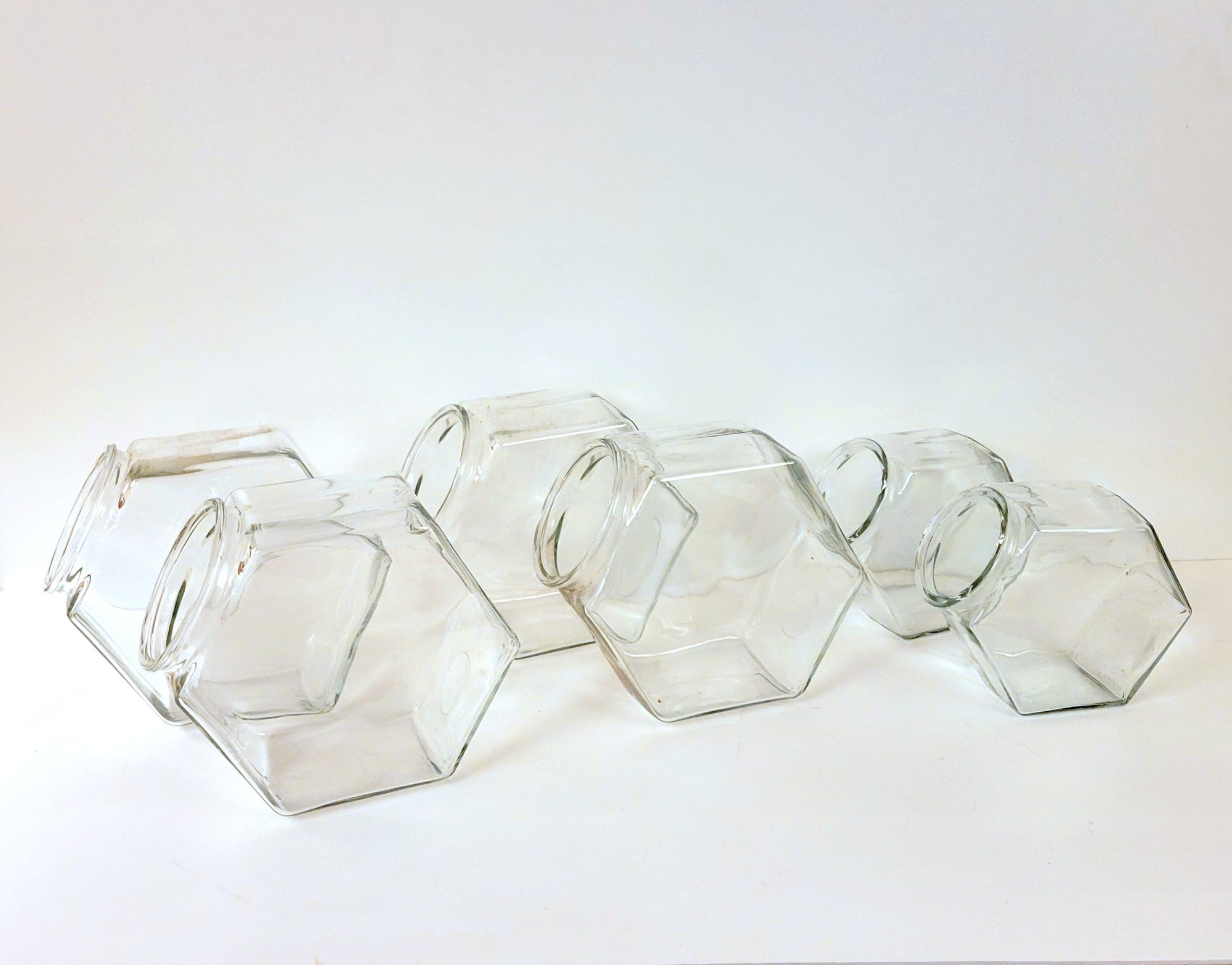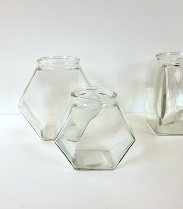 Hexagonal Glass Jars Large Lot
