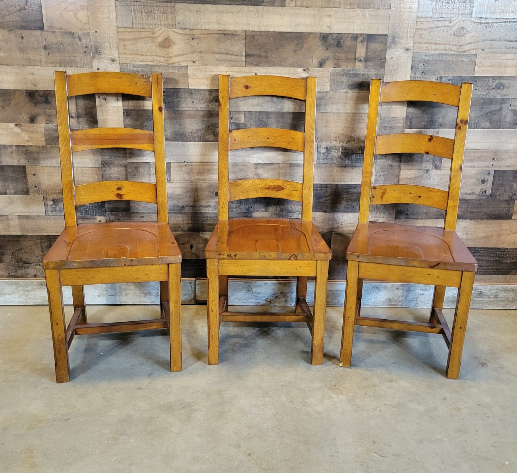 They have some wear and tear but they are very sturdy. There is a chip on the bottom of one leg. Please see photos.