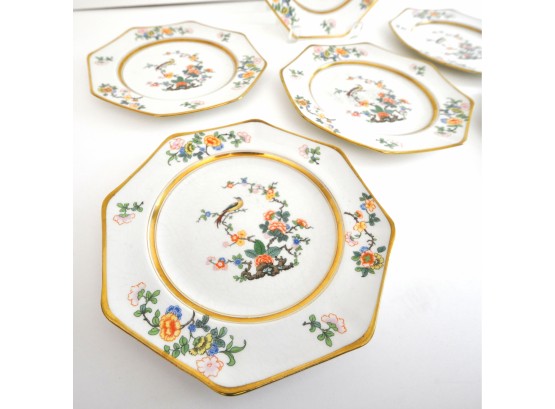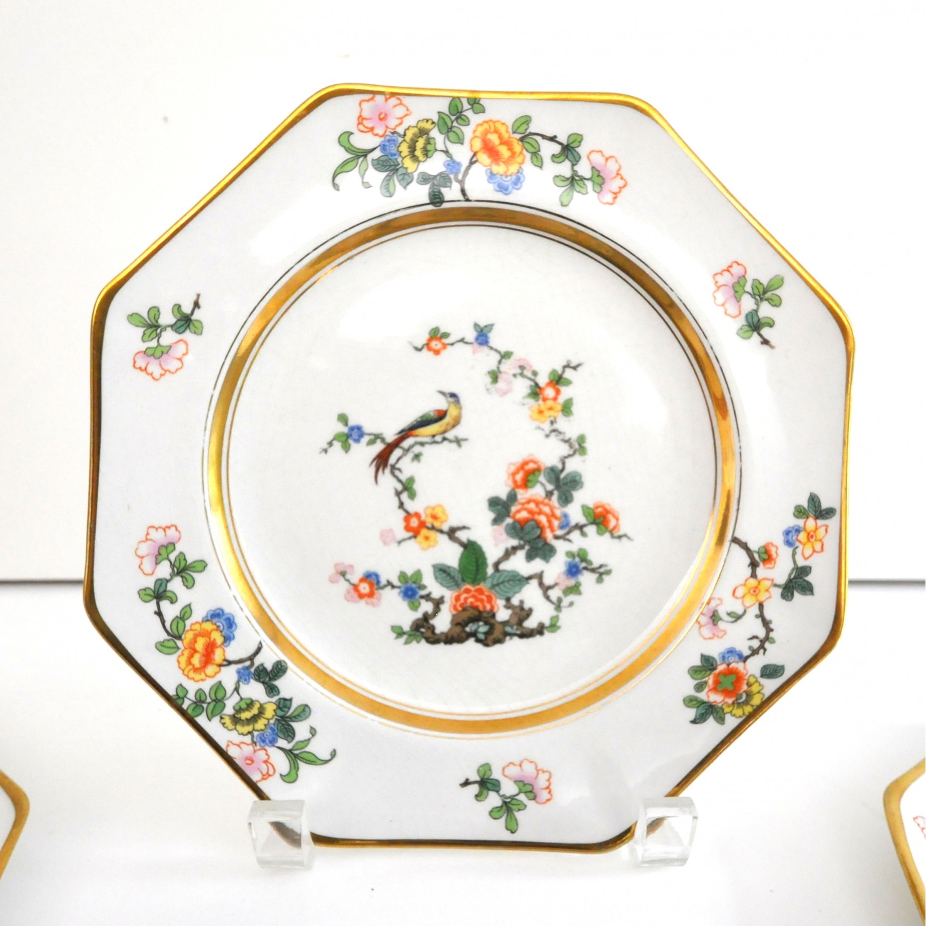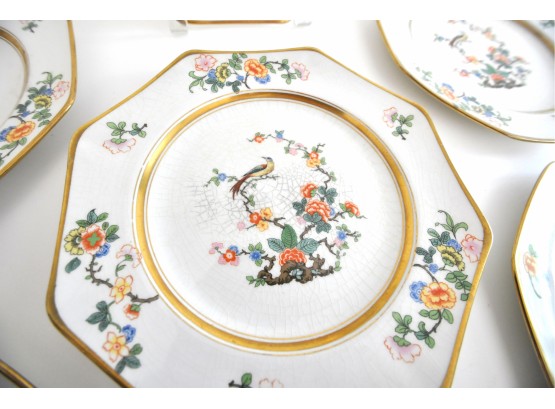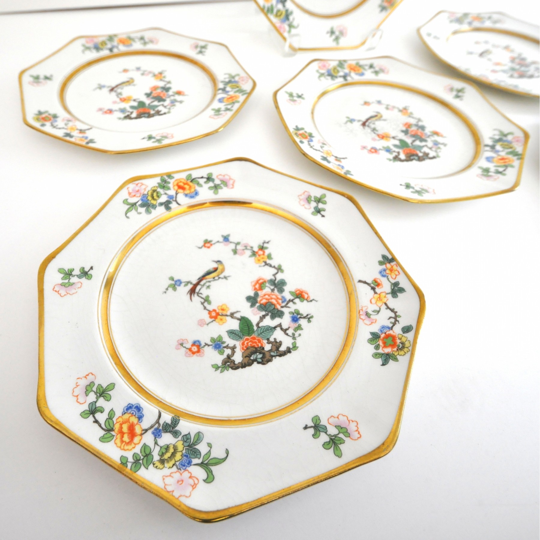 Antique Johnson Bros English China Octagonal Dishes With Oriental Bird and Flower Design