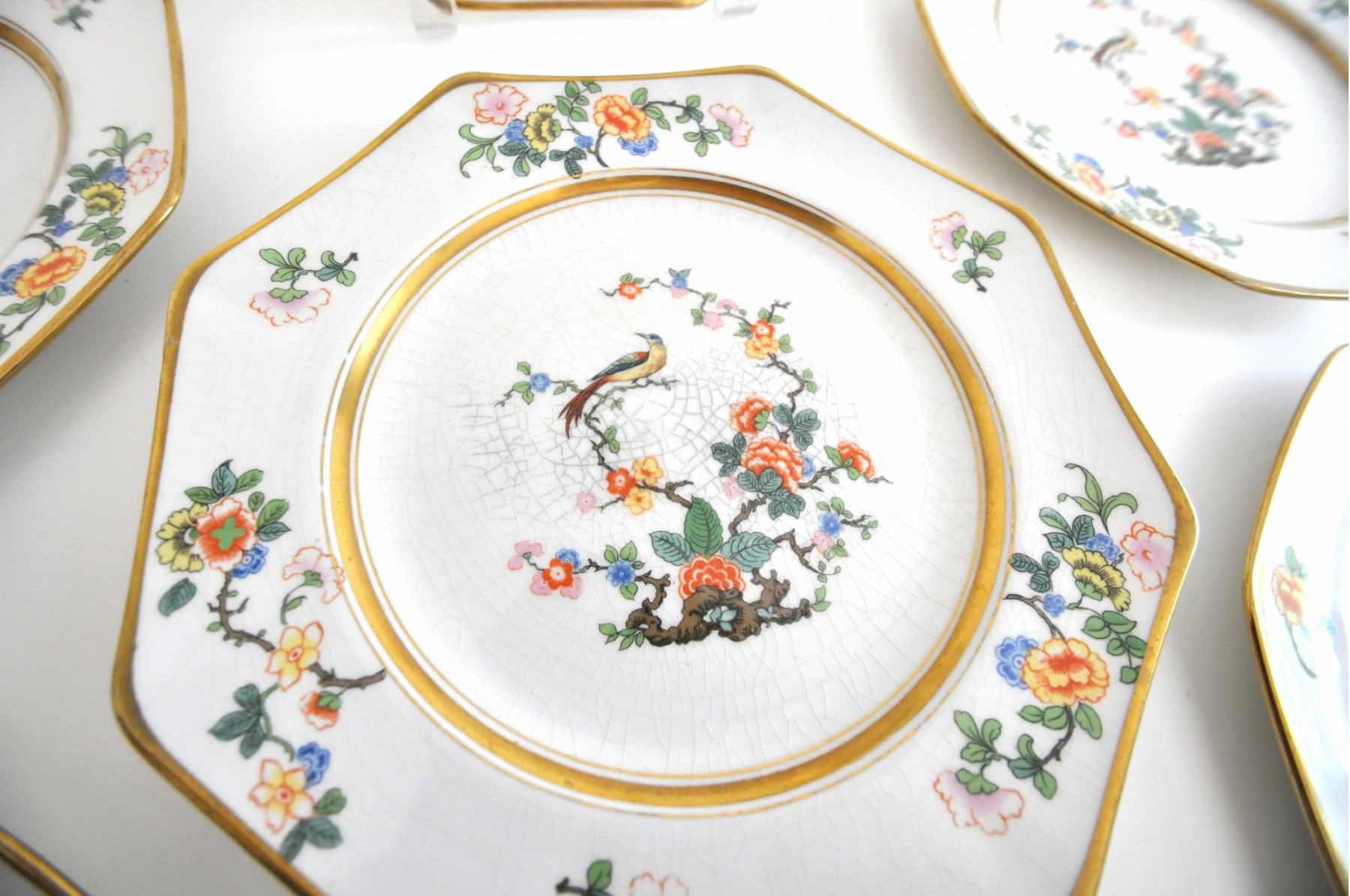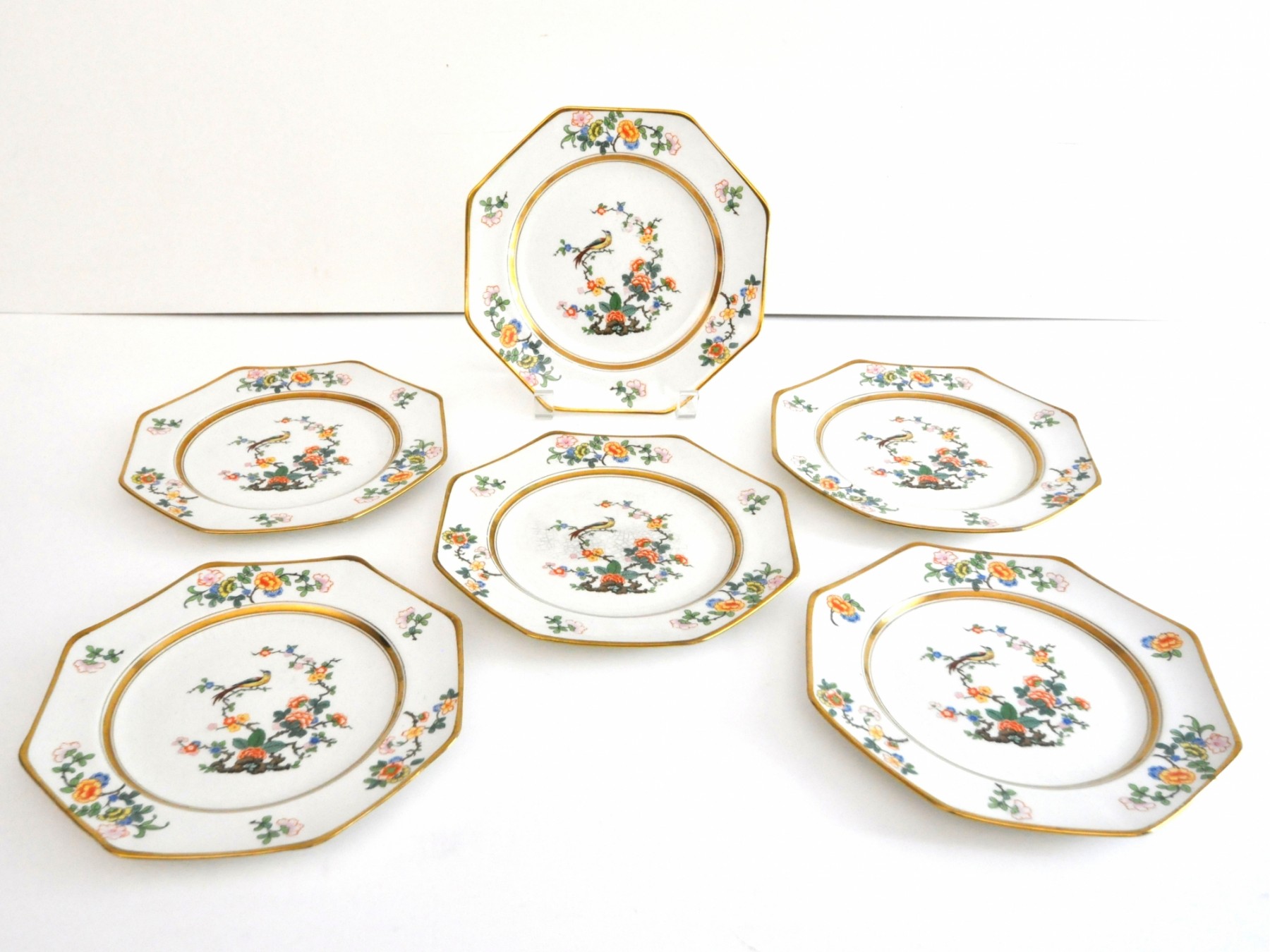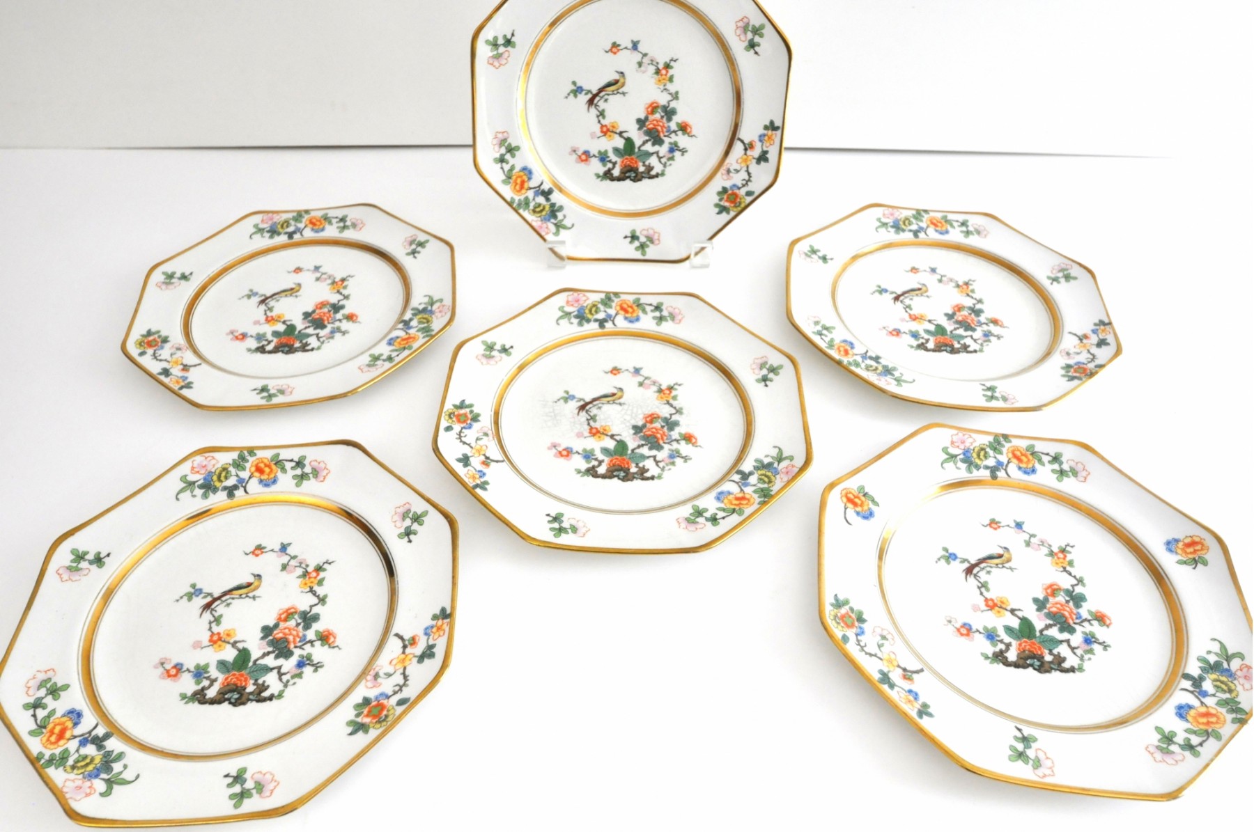 Antique Johnson Bros English China Octagonal Dishes With Oriental Bird and Flower Design