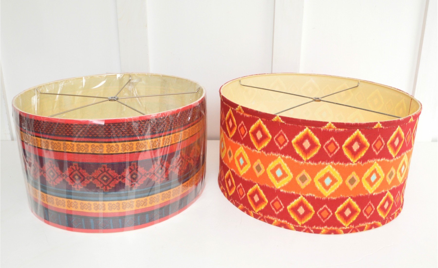 Two large lampshades. 18" dia. x 10" high and 19" dia. x 10" high.