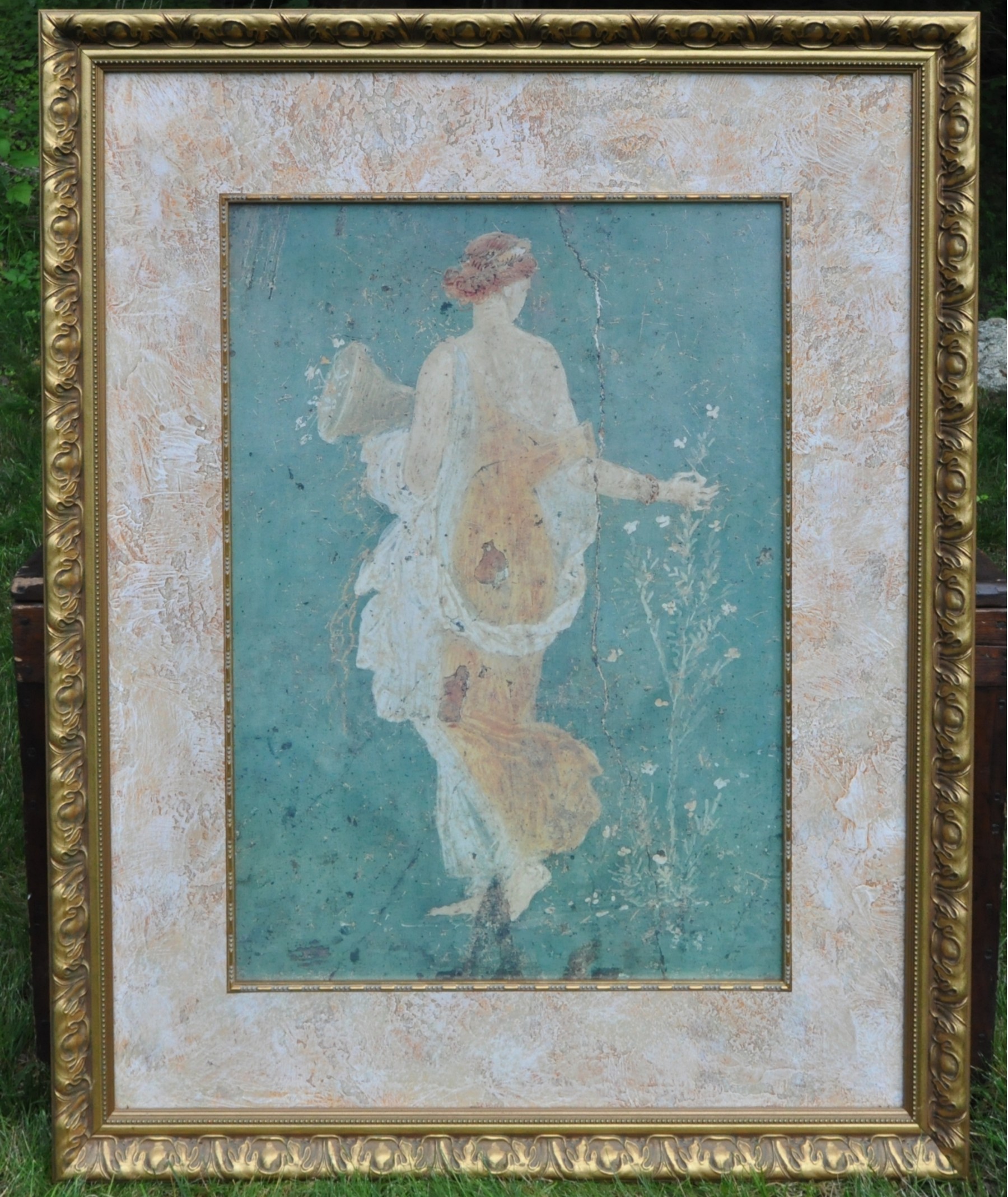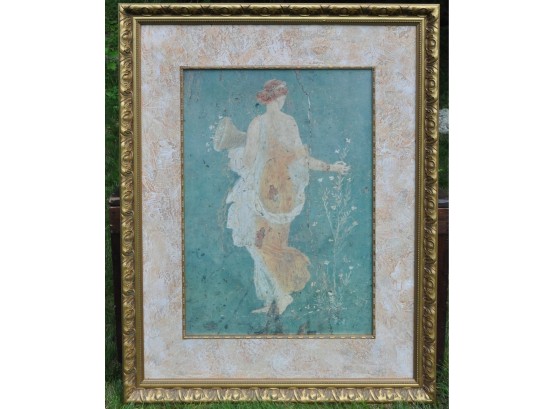 A very large ornate gold framed print of a Grecian woman. It measures 34" w x 42" high.