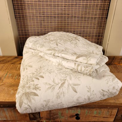 Laura Ashley Grey Floral Quilt Set, Queen Size