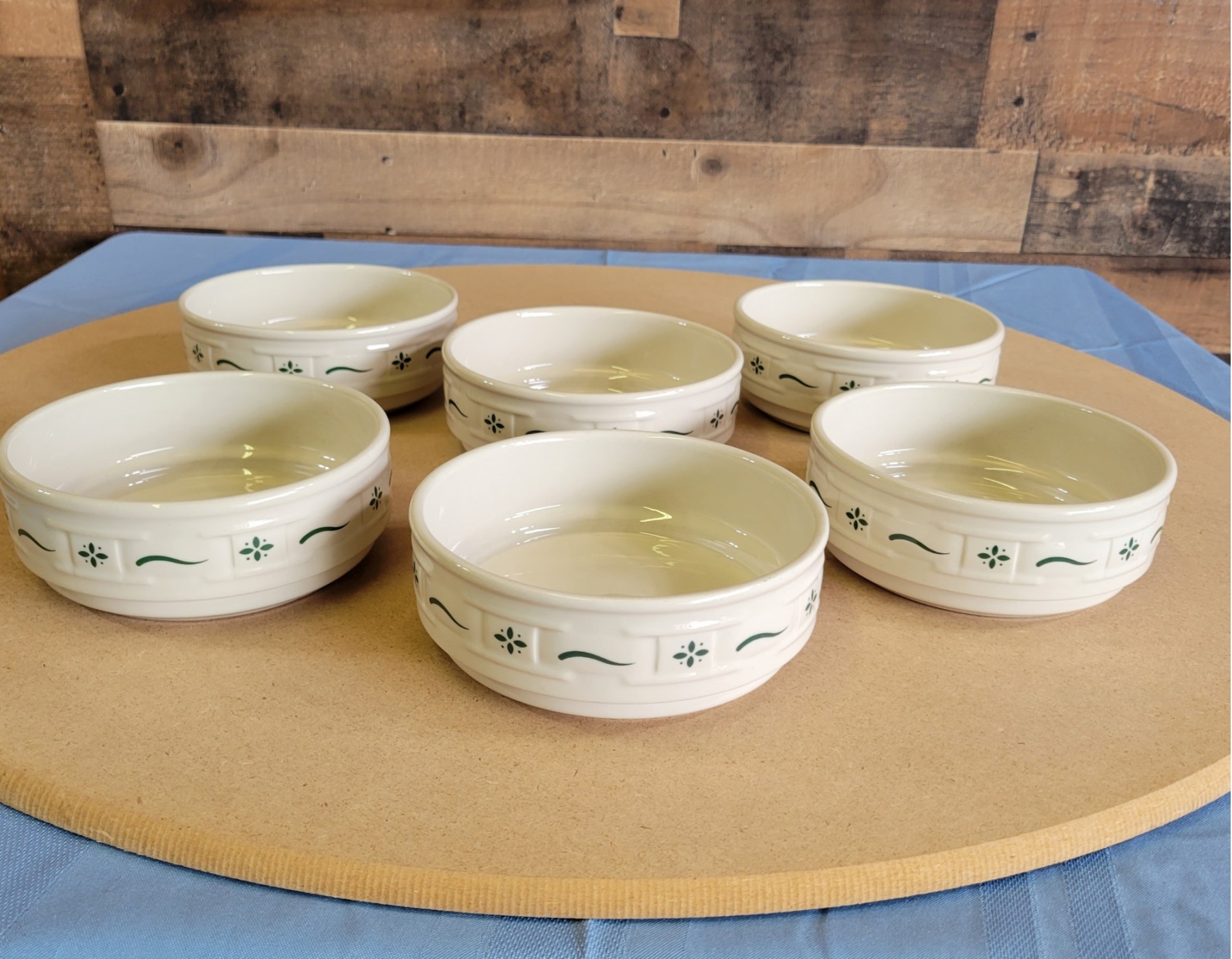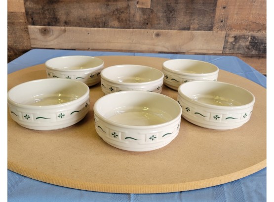 Longaberger Pottery Woven Traditions Green Soup Bowls Set Of 6