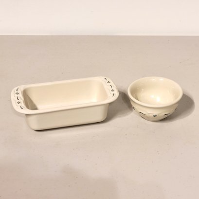 Longaberger Woven Traditions Green Small Loaf Pan and Bowl