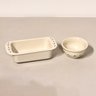 The loaf pan measures 8" x 4" and the bowl is 4" in diameter. Good condition.