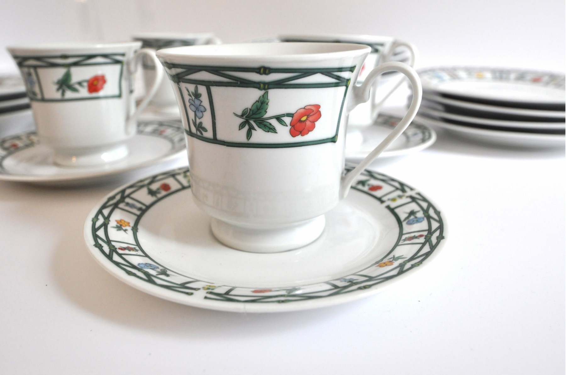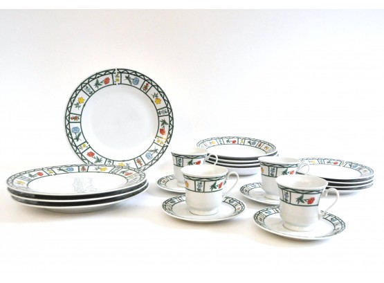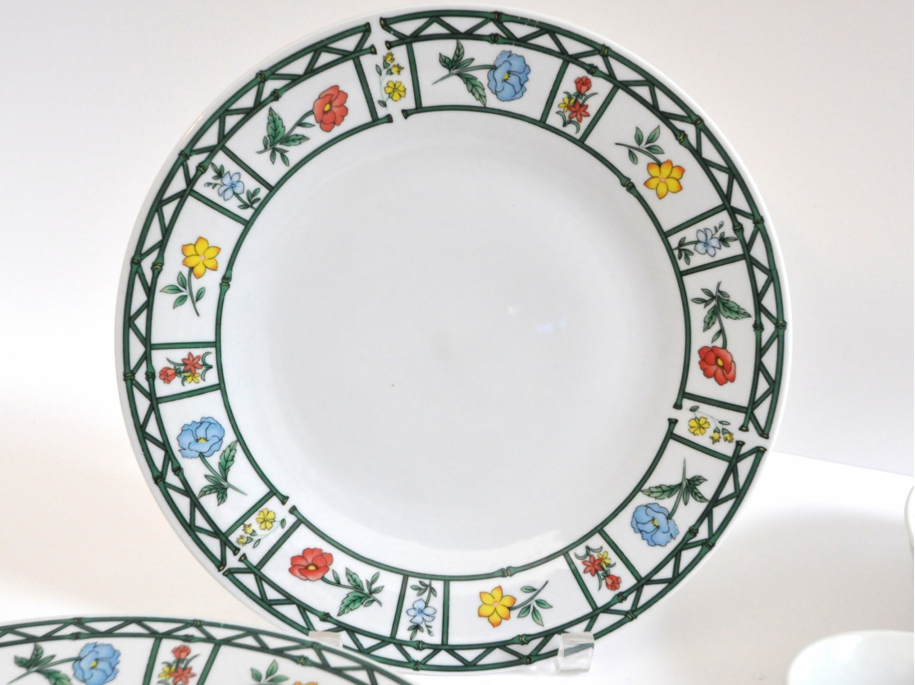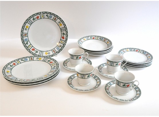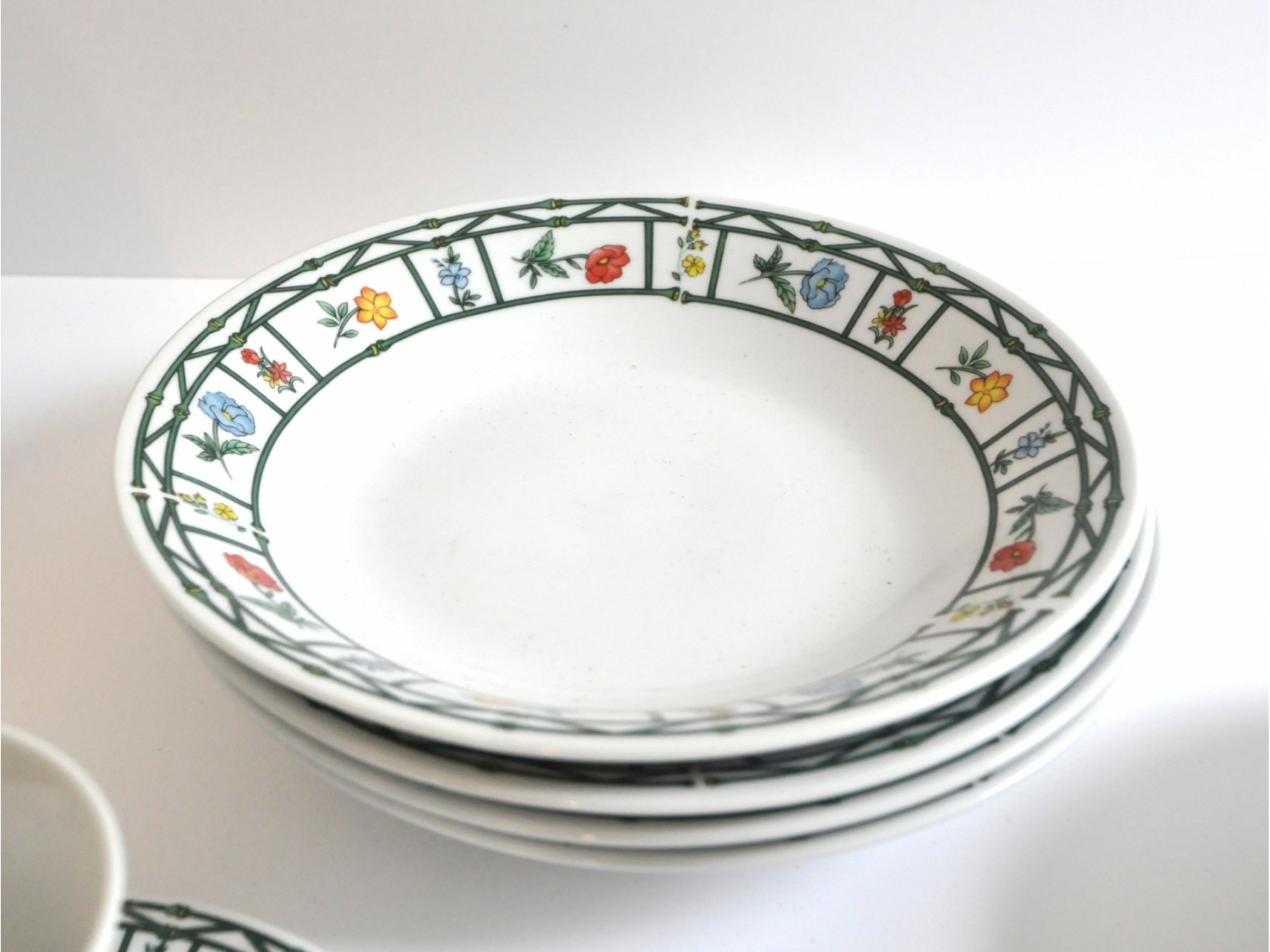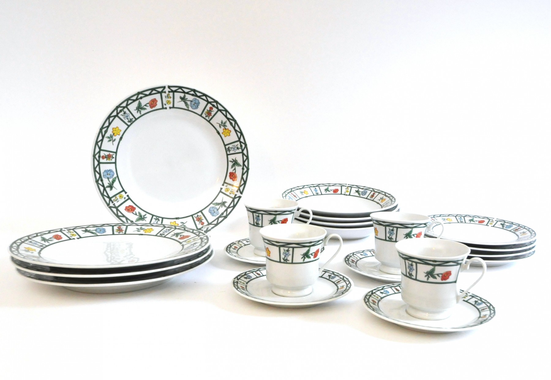 ncluded are: 4 dinner plates, 4 salad/dessert plates, 4 bowls and 4 cup and saucer sets. Oven proof, dishwasher proof and microwave safe. Good condition.