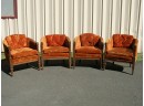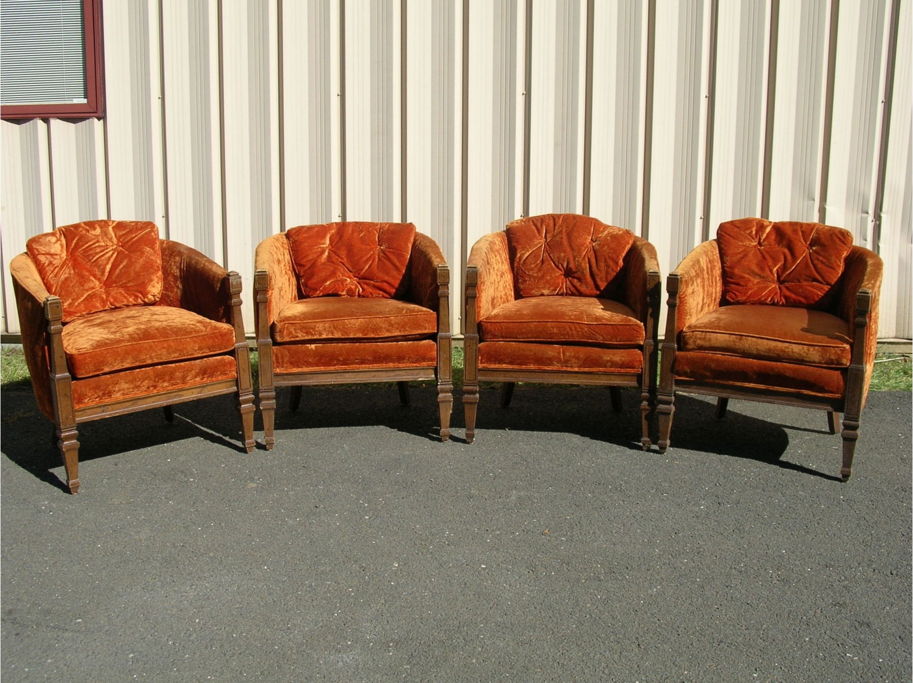 What a great set! The wood frames have wear and tear and the upholstery could use replacing unless you don't mind a shabby chic look. They are a great size for a grouping around a cocktail table.