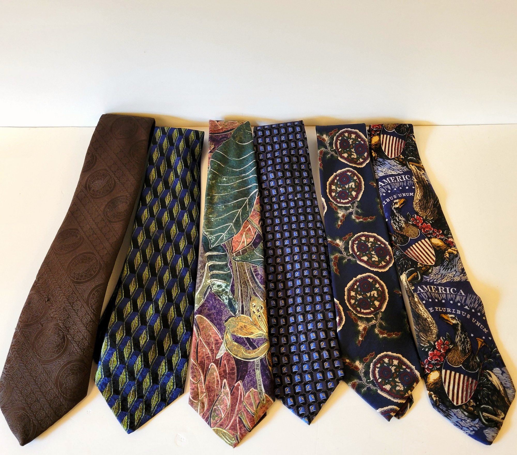 Men's Neck Tie Collection, Lot of Six with Patriotic Tie