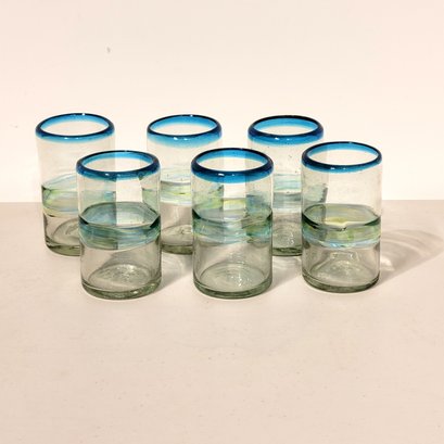 Handmade Recycled Glass Mexican Drinking Glasses Set of Six