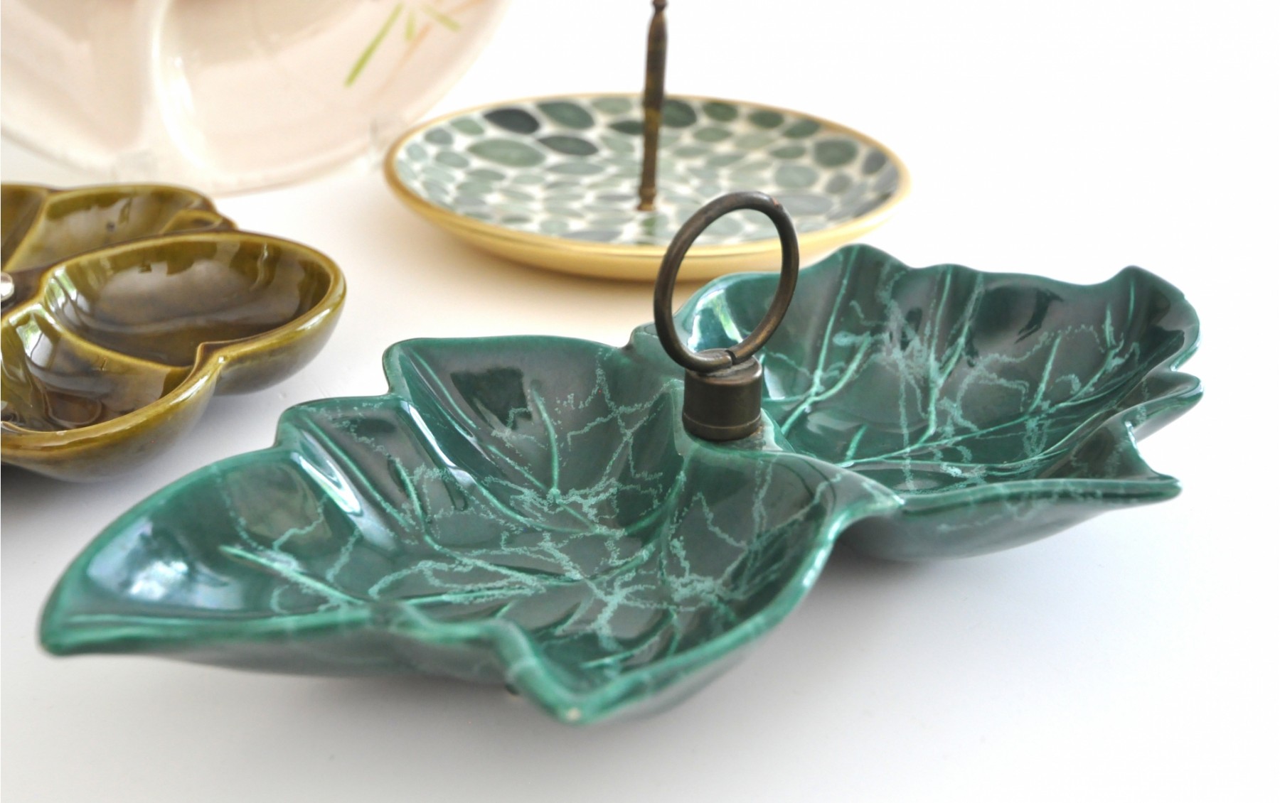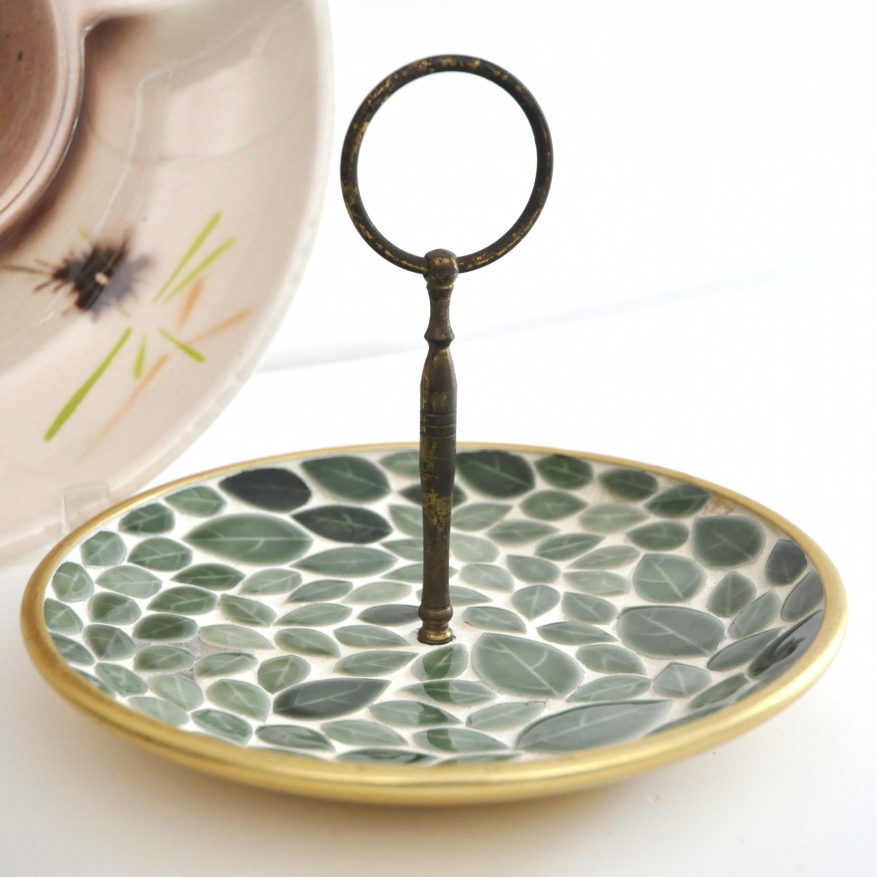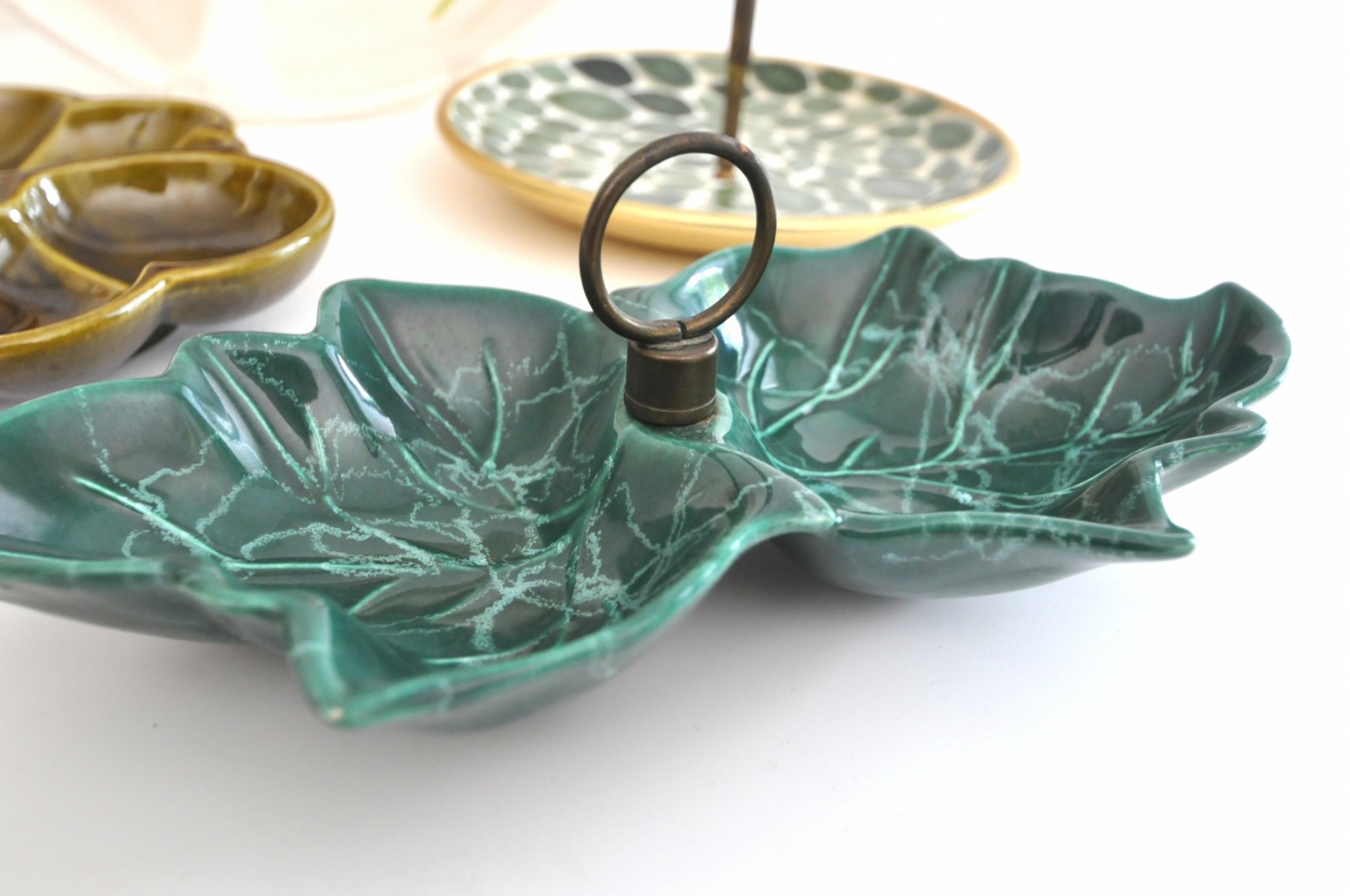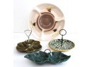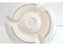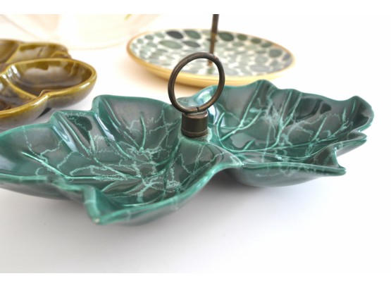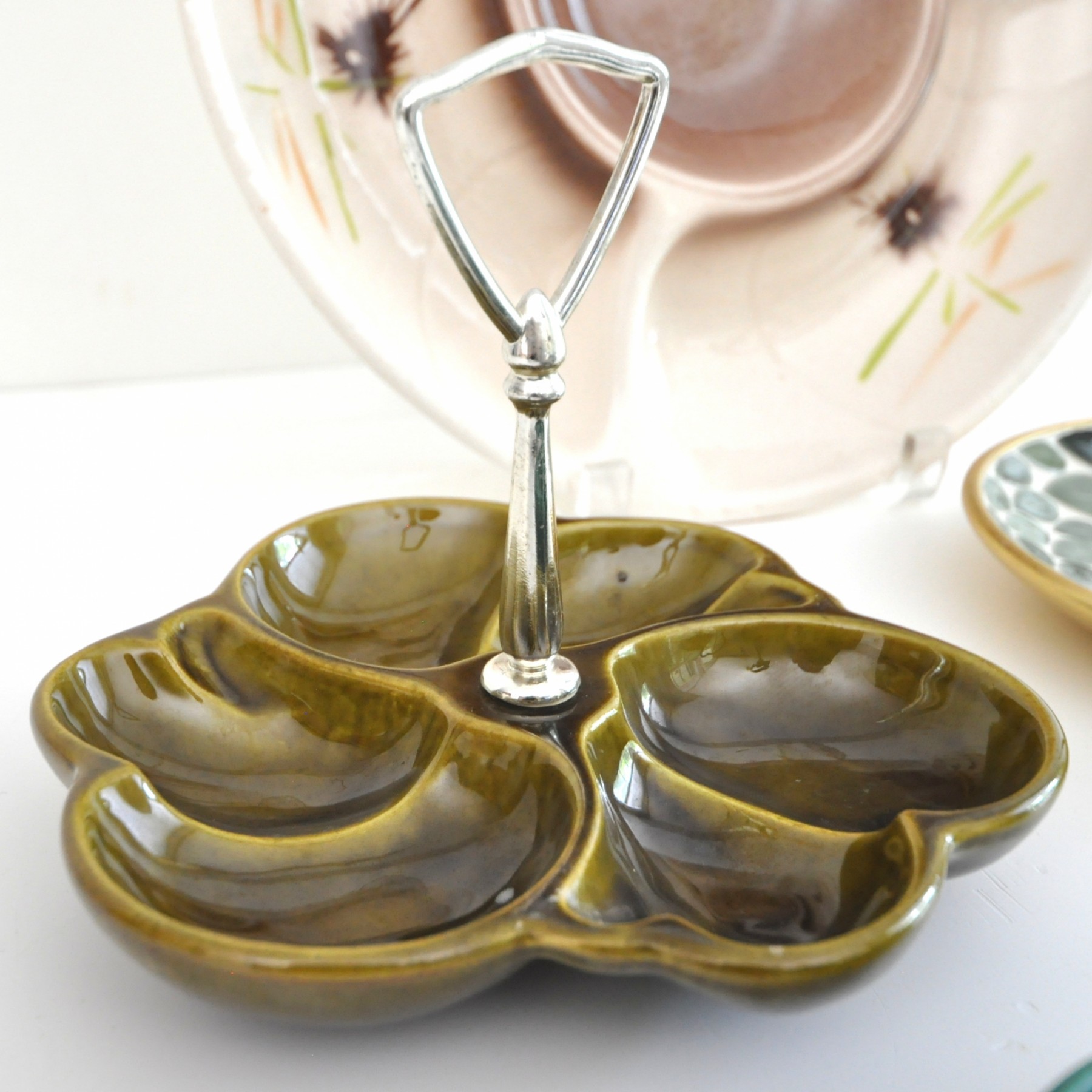 A 12" diameter chip and dip marked Lane and Co, California and three handled tid-bit trays.