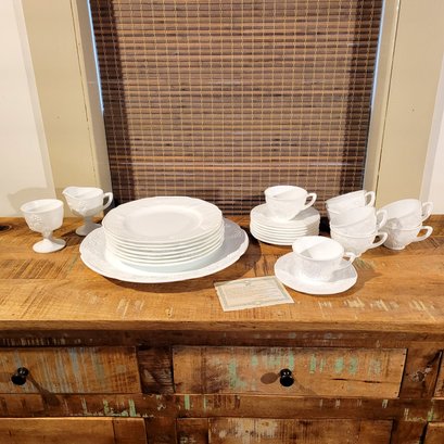 Milk Glass Luncheon Set , Vintage Colony Authentic Milk Glass