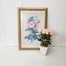 A beautiful gold framed print that measures 16 1/2" wide x 24 1/2" high. The coordinating silk floral arrangement measures 14" high.
