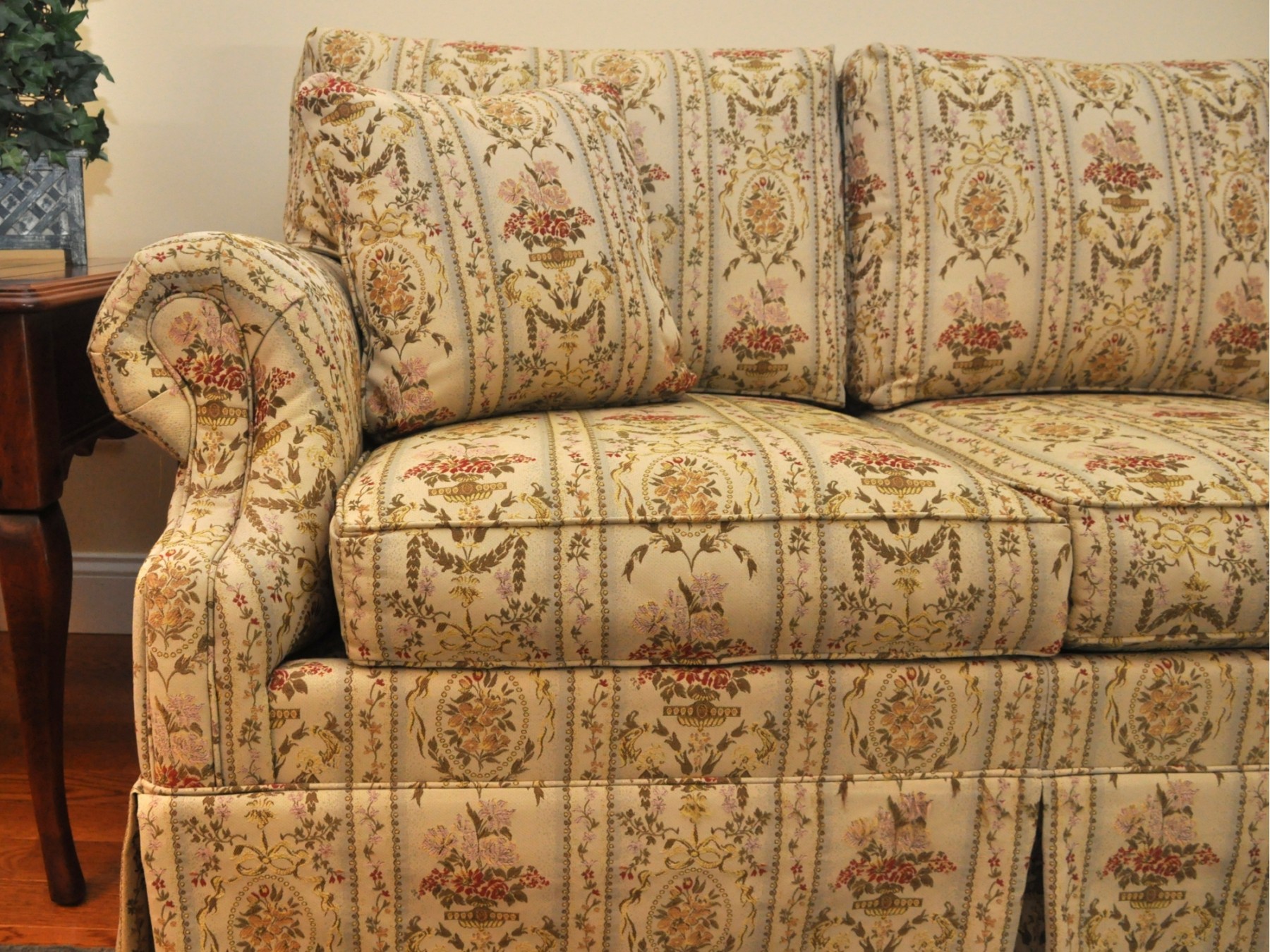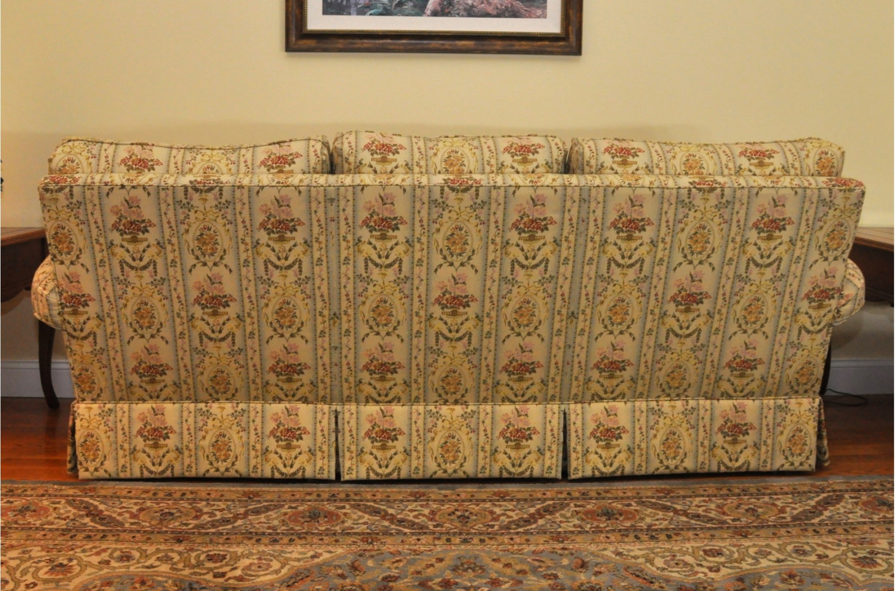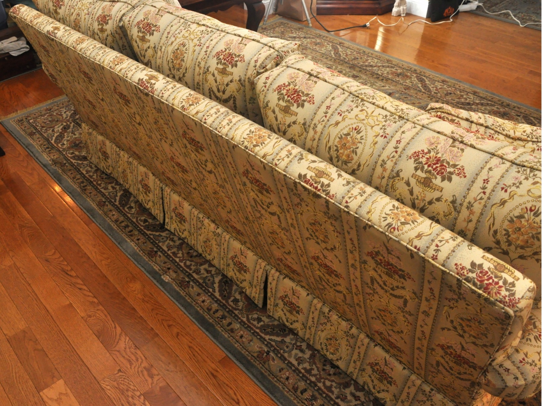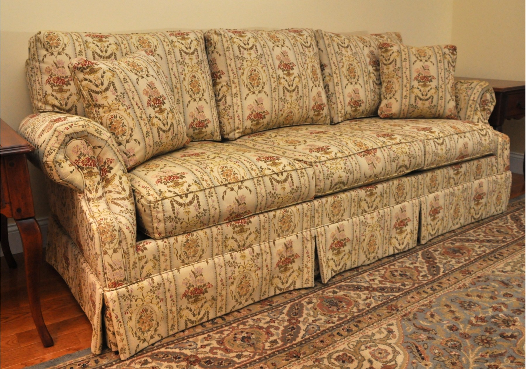 Like new, American made, eight-way hand tied springs, kiln-dried hardwood frame. It is in excellent condition. 88" long x 36" deep x 36" high, 19" seat depth.