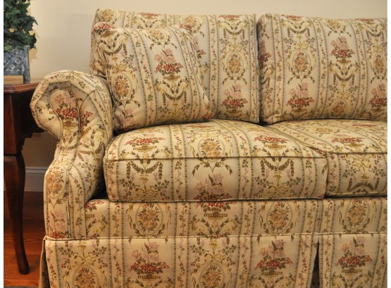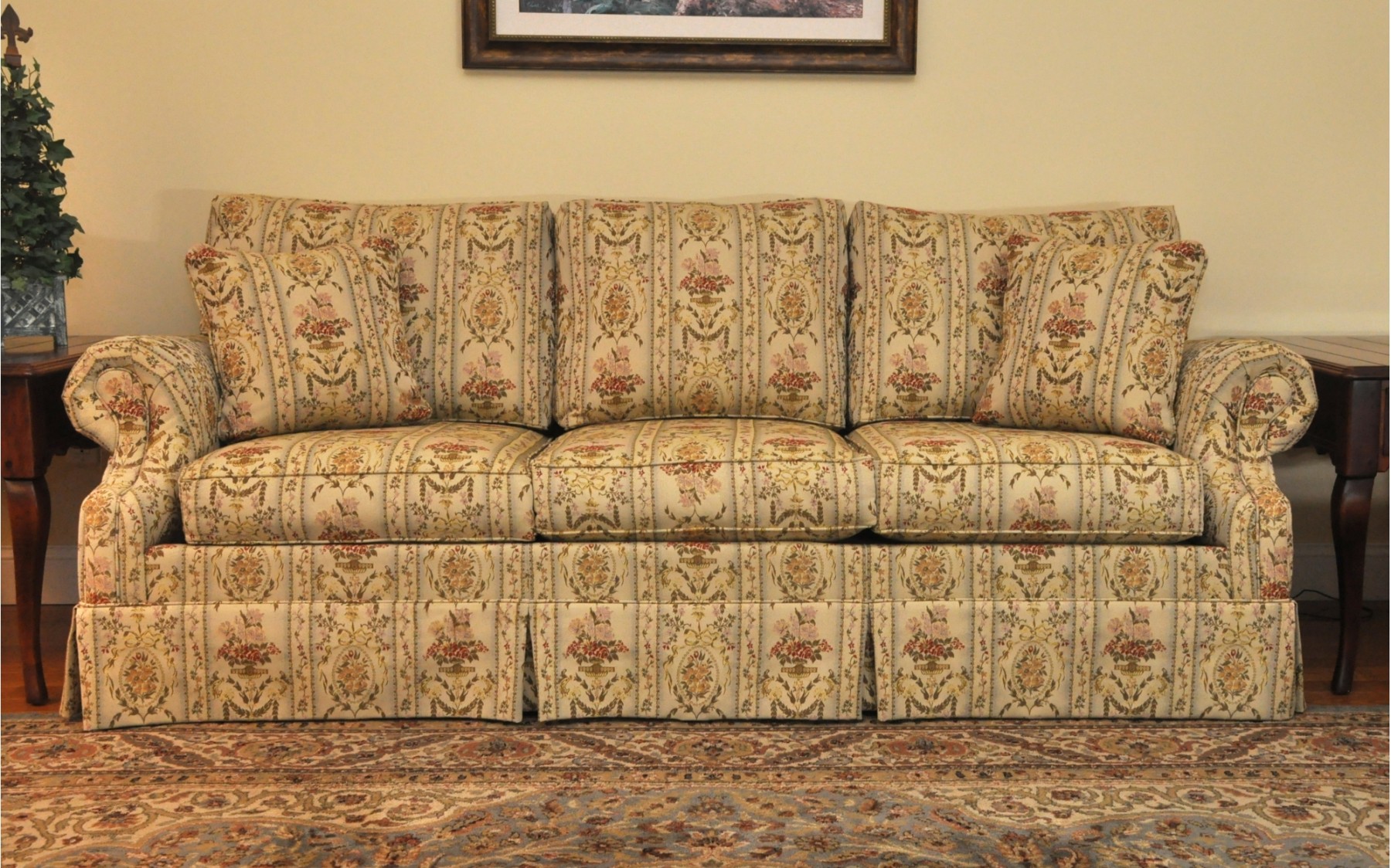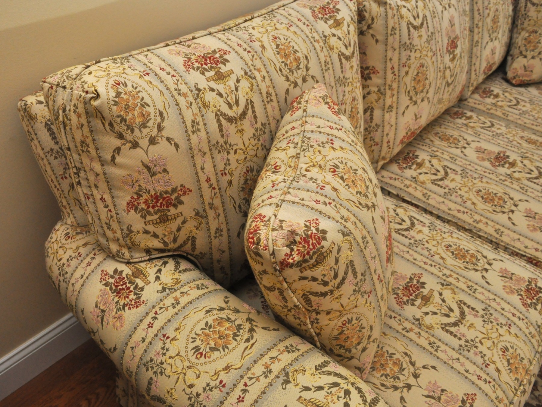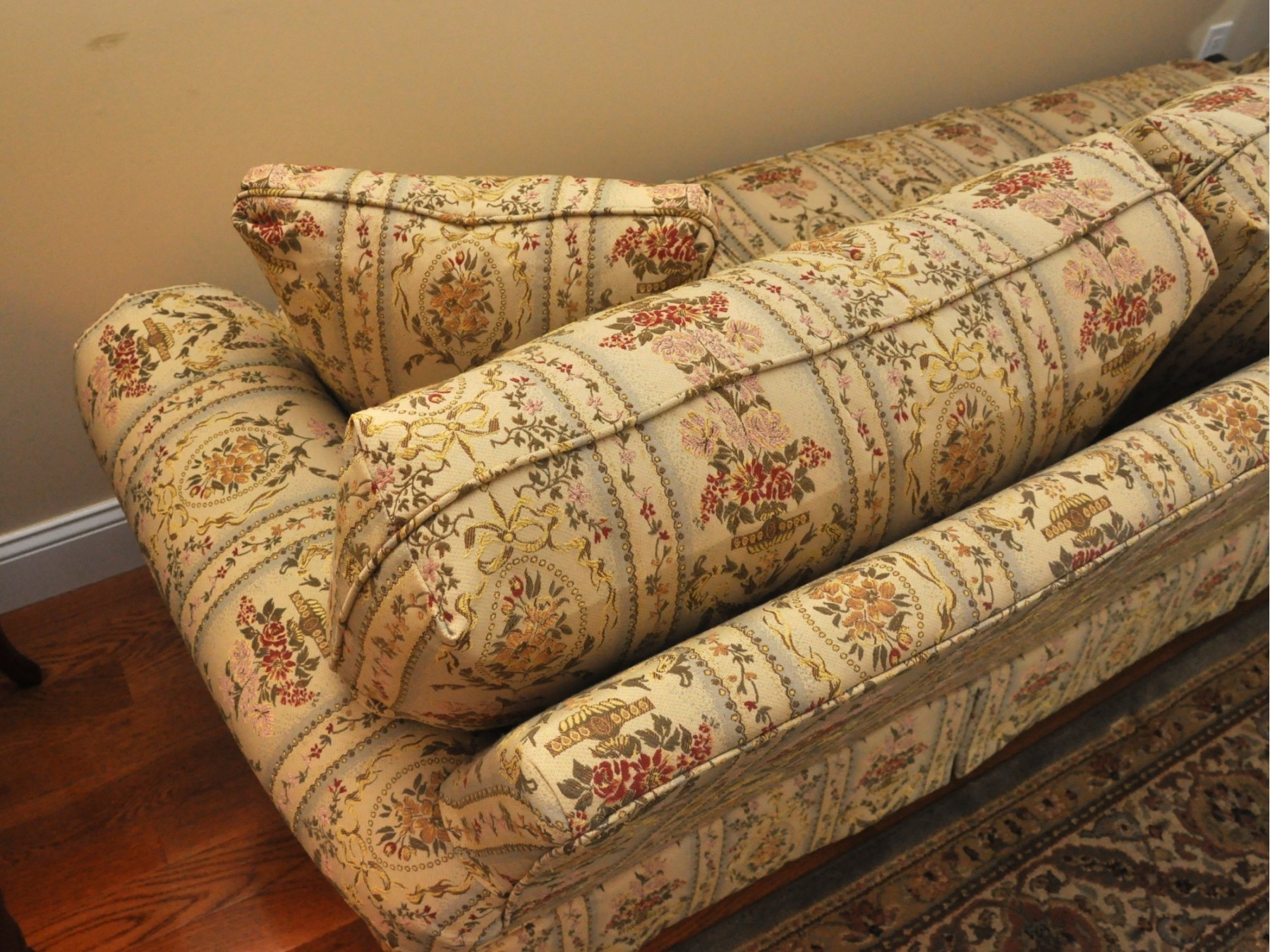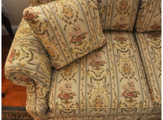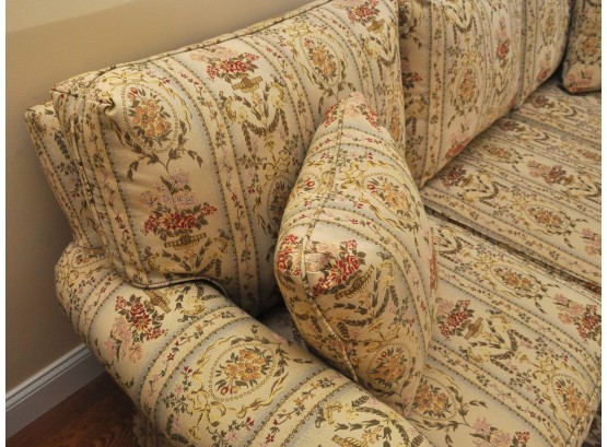 Like new, American made, eight-way hand tied springs, kiln-dried hardwood frame. It is in excellent condition. 88" long x 36" deep x 36" high, 19" seat depth.