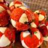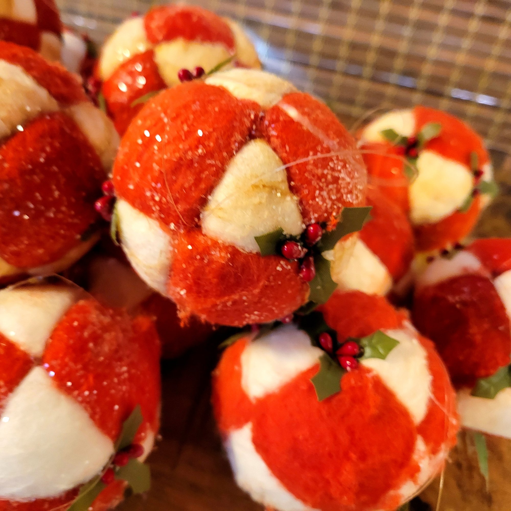 Primitive Felted Red and White Ornaments or Bowl Filler