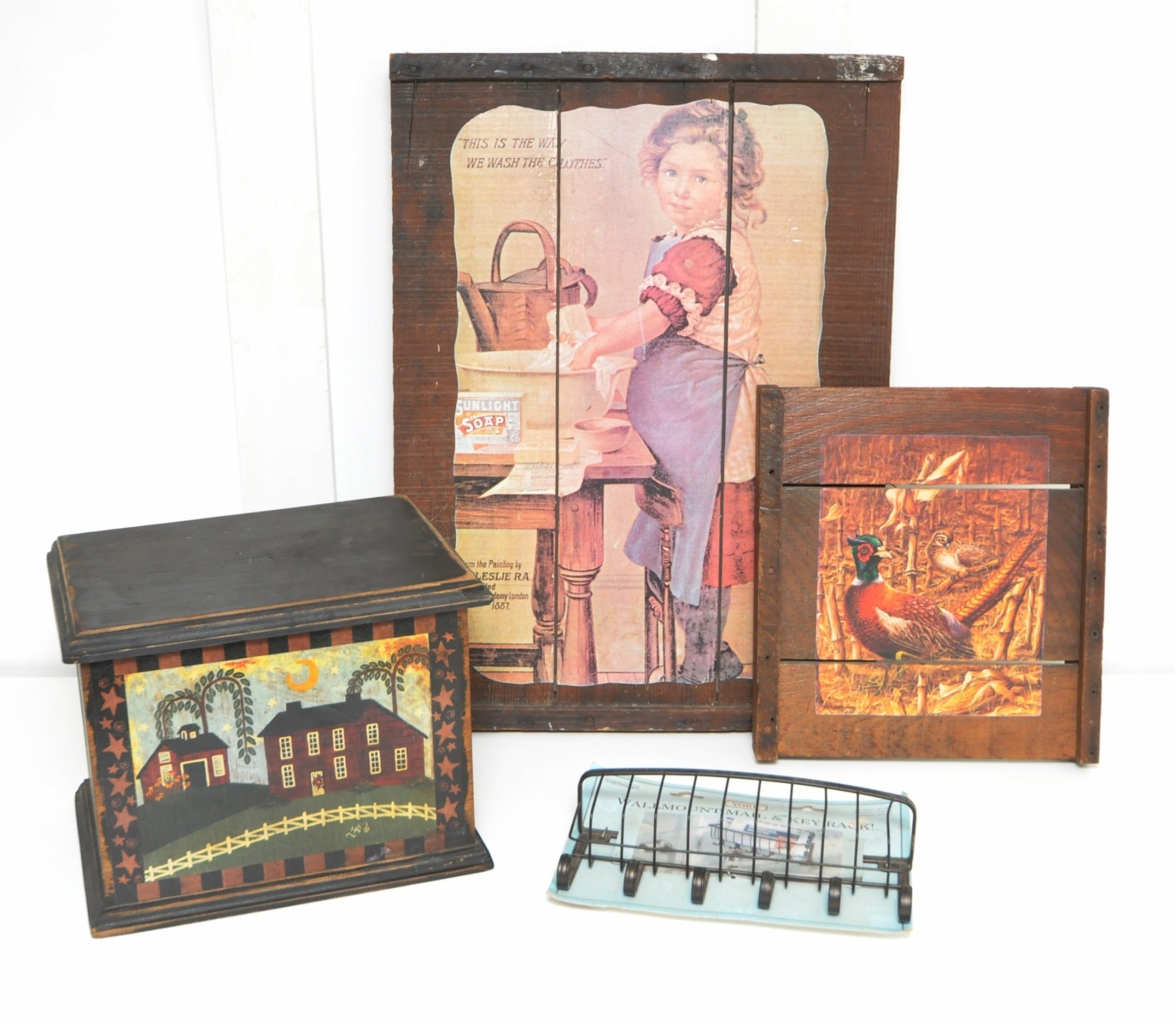 Rustic Prints, Folk Art Box, Wire Key Rack