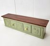 With an embossed fruit design. It measures 24" x 5 1/2" deep and 6 1/2" high. It has a few scuffs and chips.