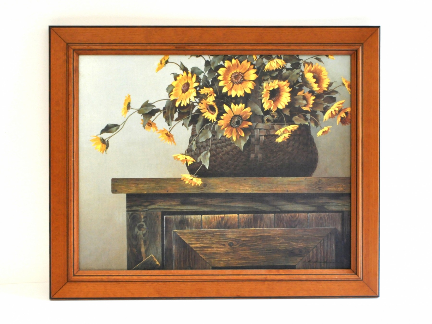 A textured print without glass in a wood frame. It measures 24" wide x 20" high.