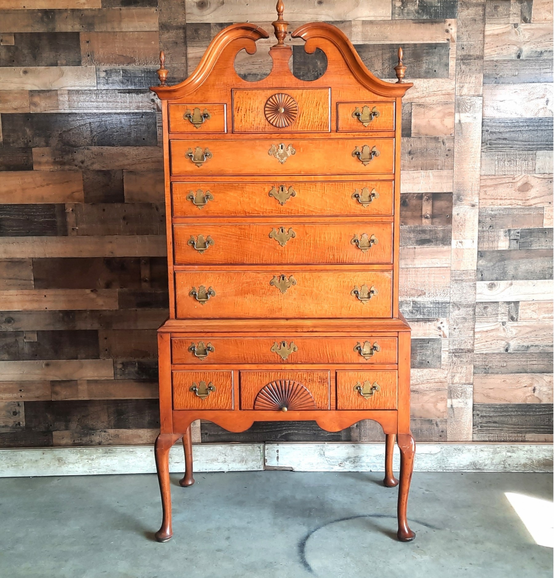 Tiger Maple Curly Maple Highboy Dresser