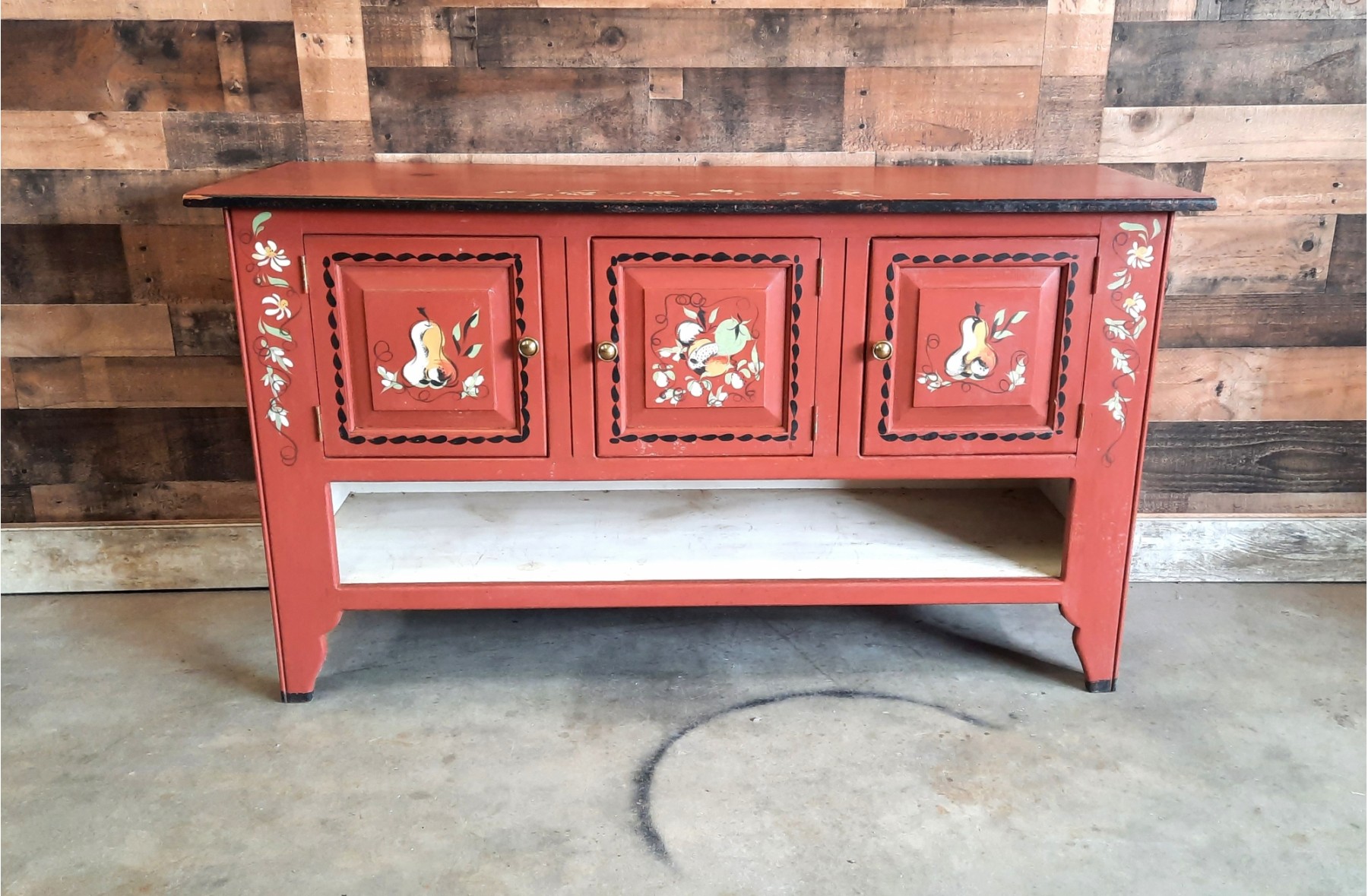 Tole Painted Folk Art Sideboard Artist Jean Dewey