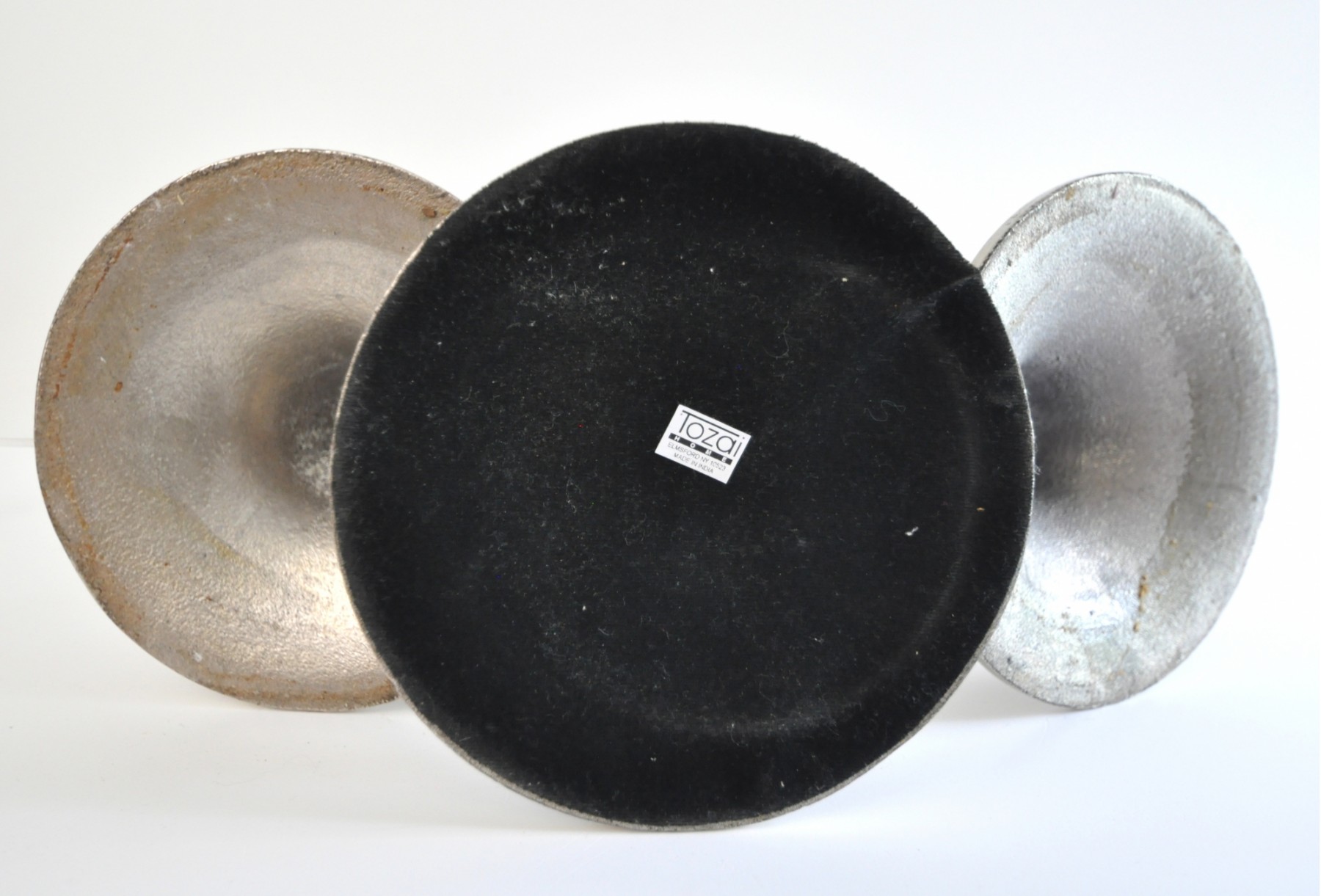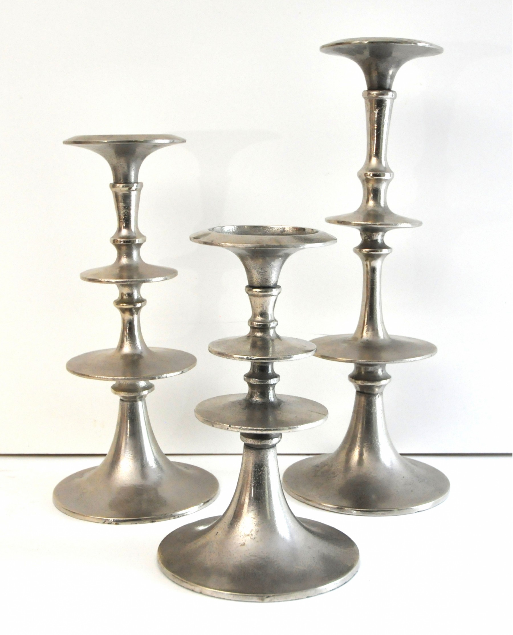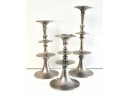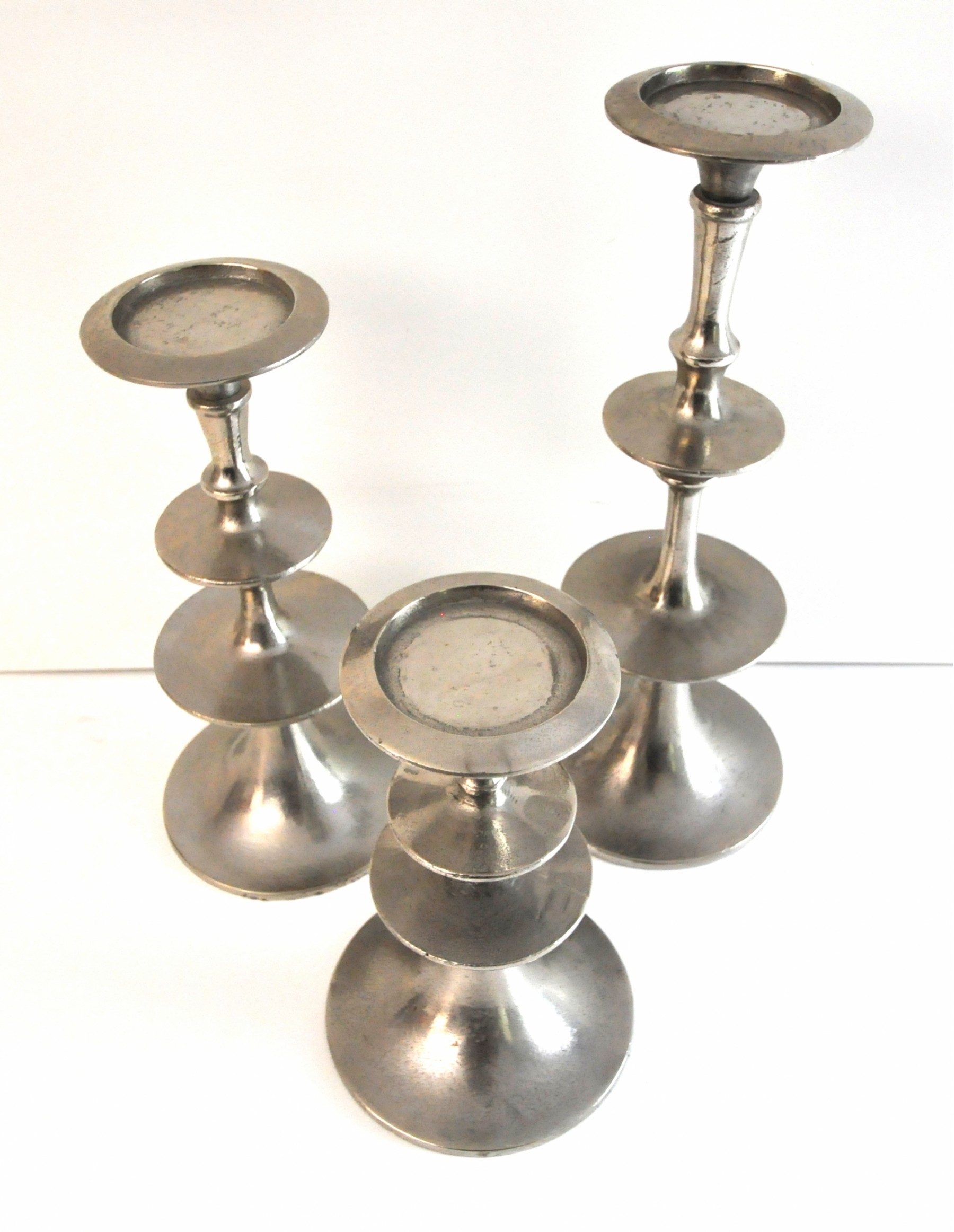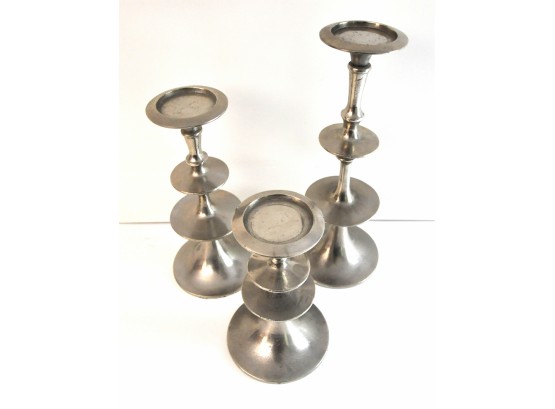 10 1/2" , 13 1/2" and 16 1/2" high with 6" diameter bases and 4 1/2" diameter tops.