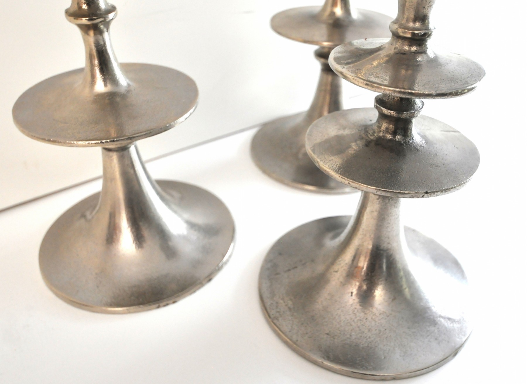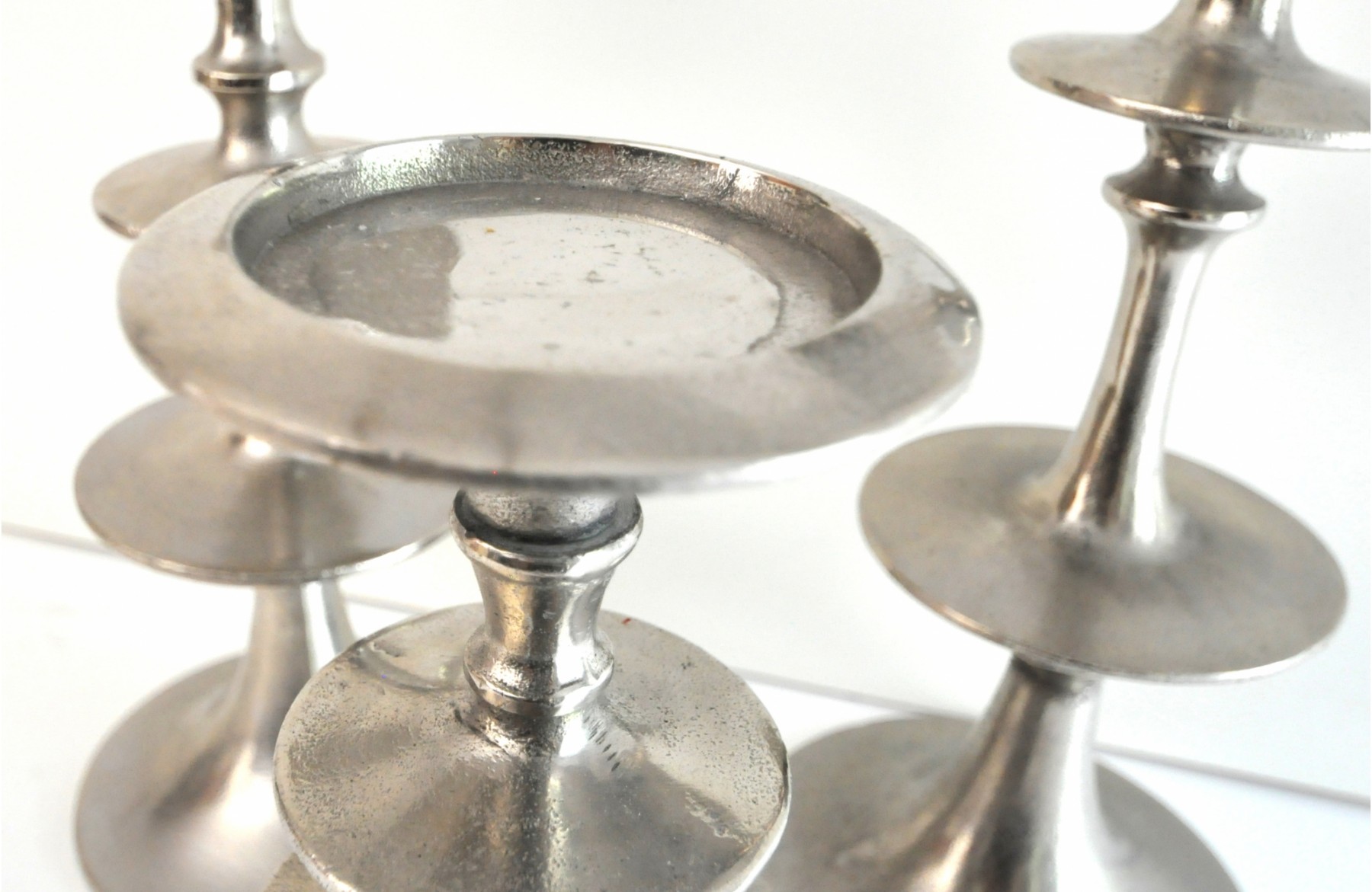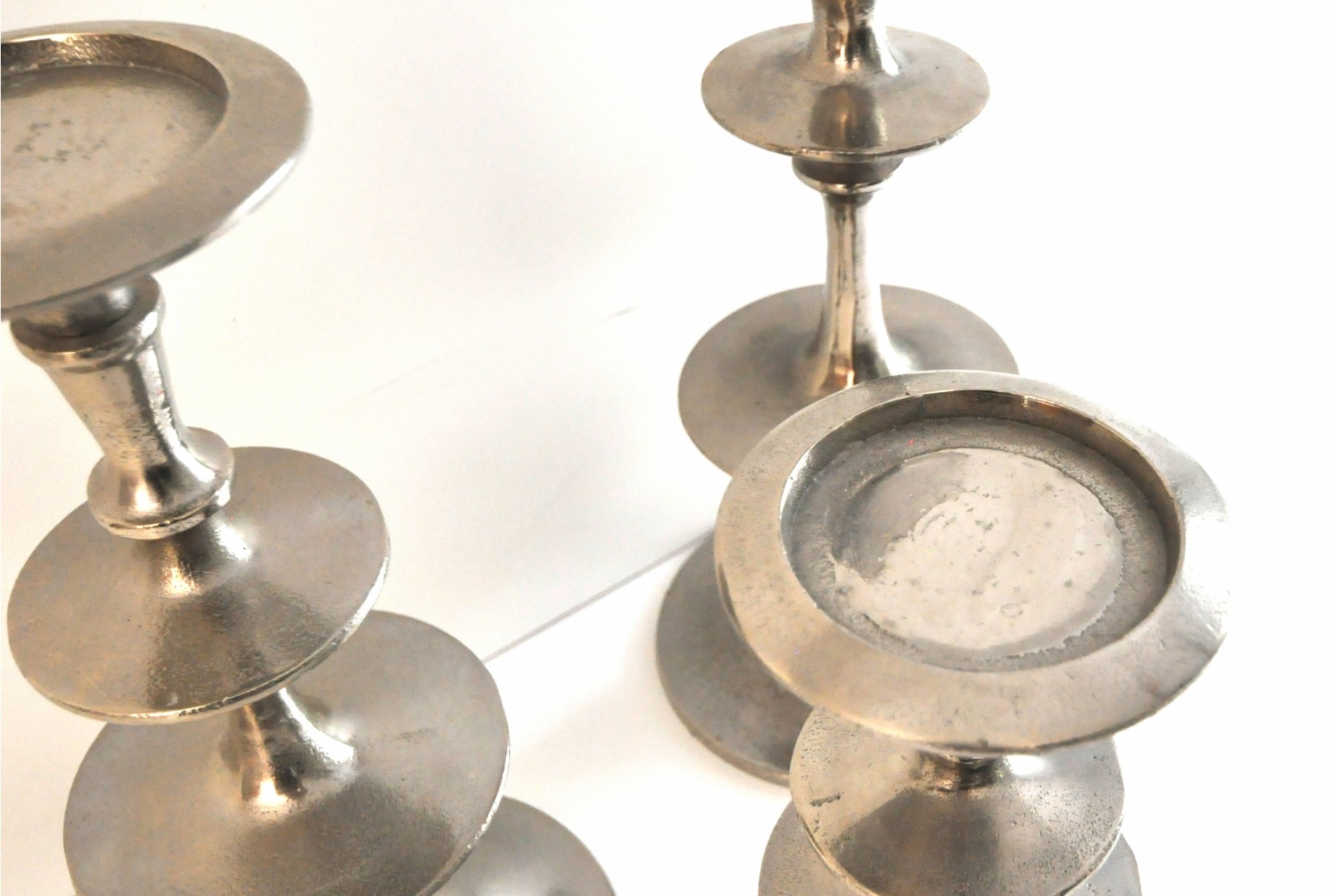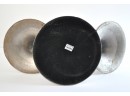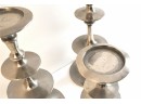 10 1/2" , 13 1/2" and 16 1/2" high with 6" diameter bases and 4 1/2" diameter tops.