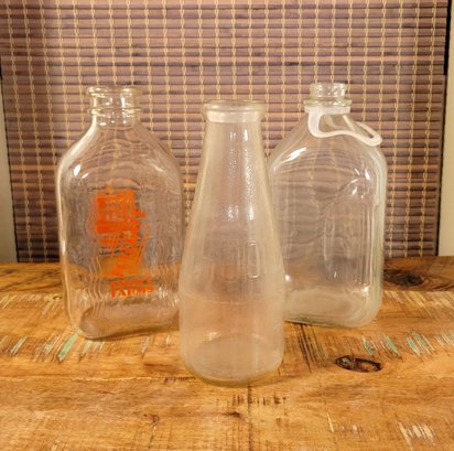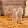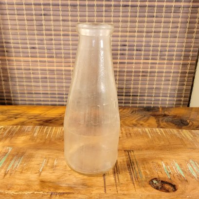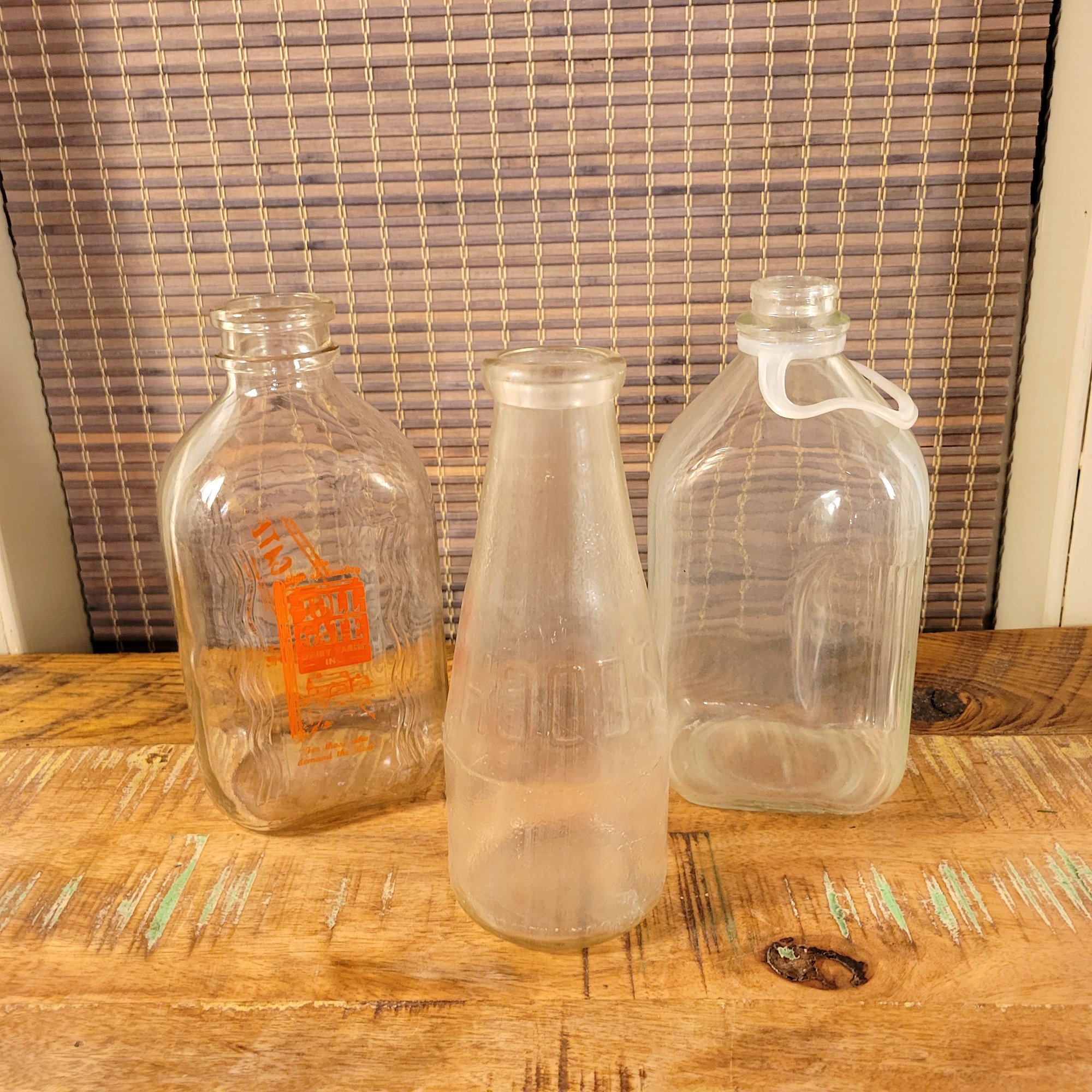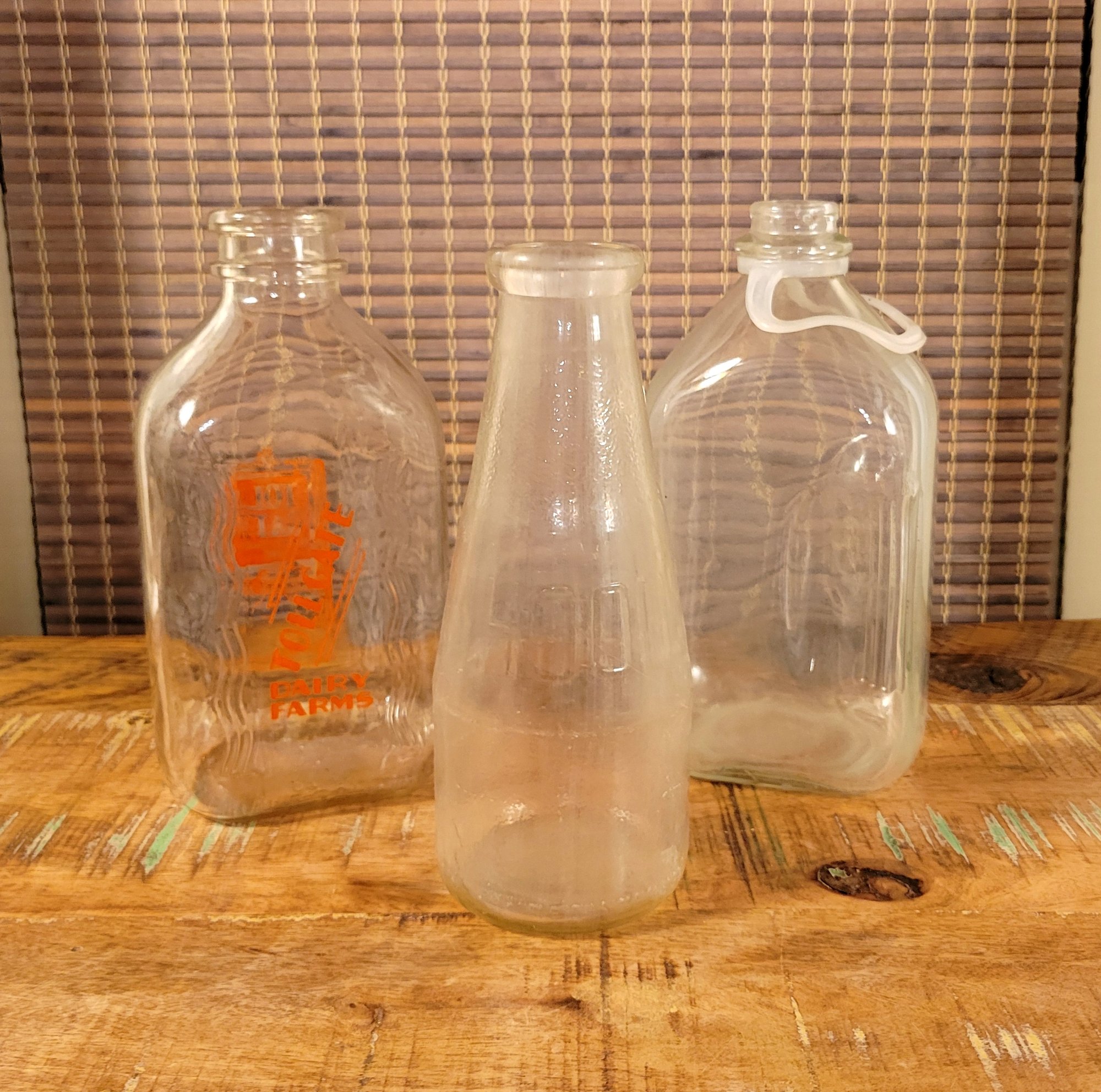 Three vintage milk bottles 9" -10" high. Tole Gate Dairy Farm, Hood, and one unmarked.