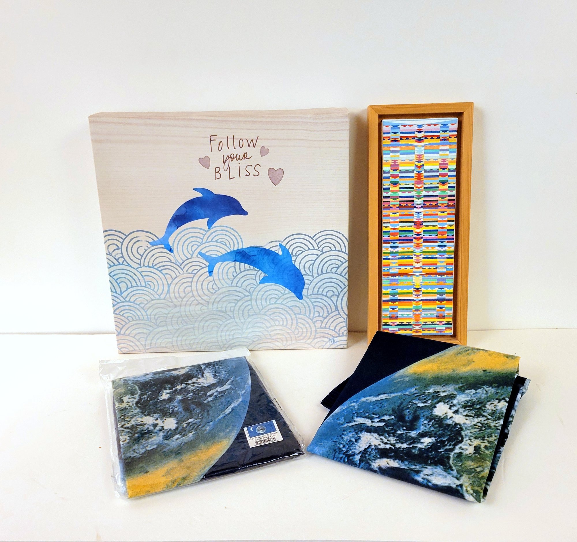 Prints measure 14" x 14" and 6" x 14", two new in package Earth, Moon and Stars flags measure 20" x 30".