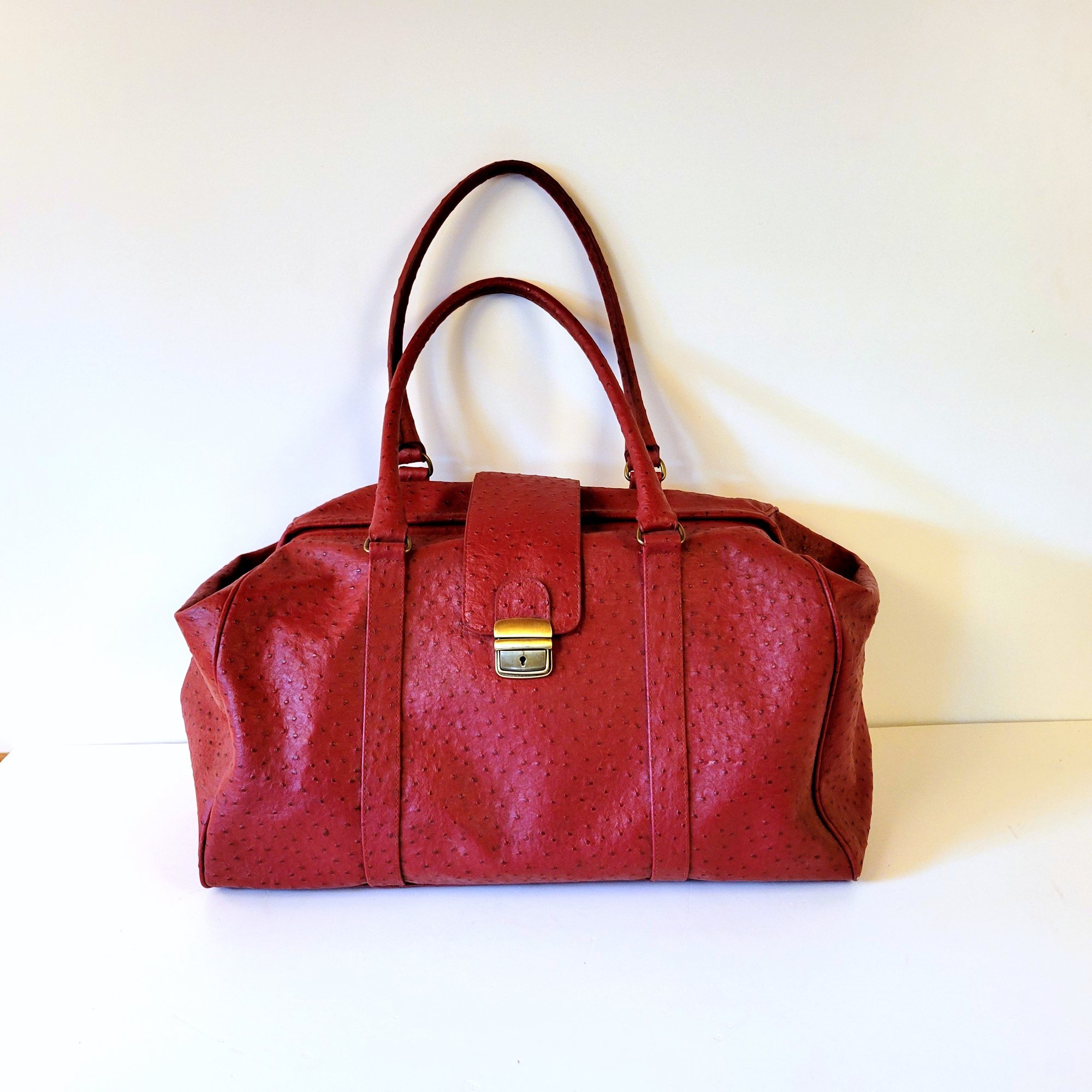 Vintage faux leather bag, 20" w x 10" d x 12" high. Very good condition.
