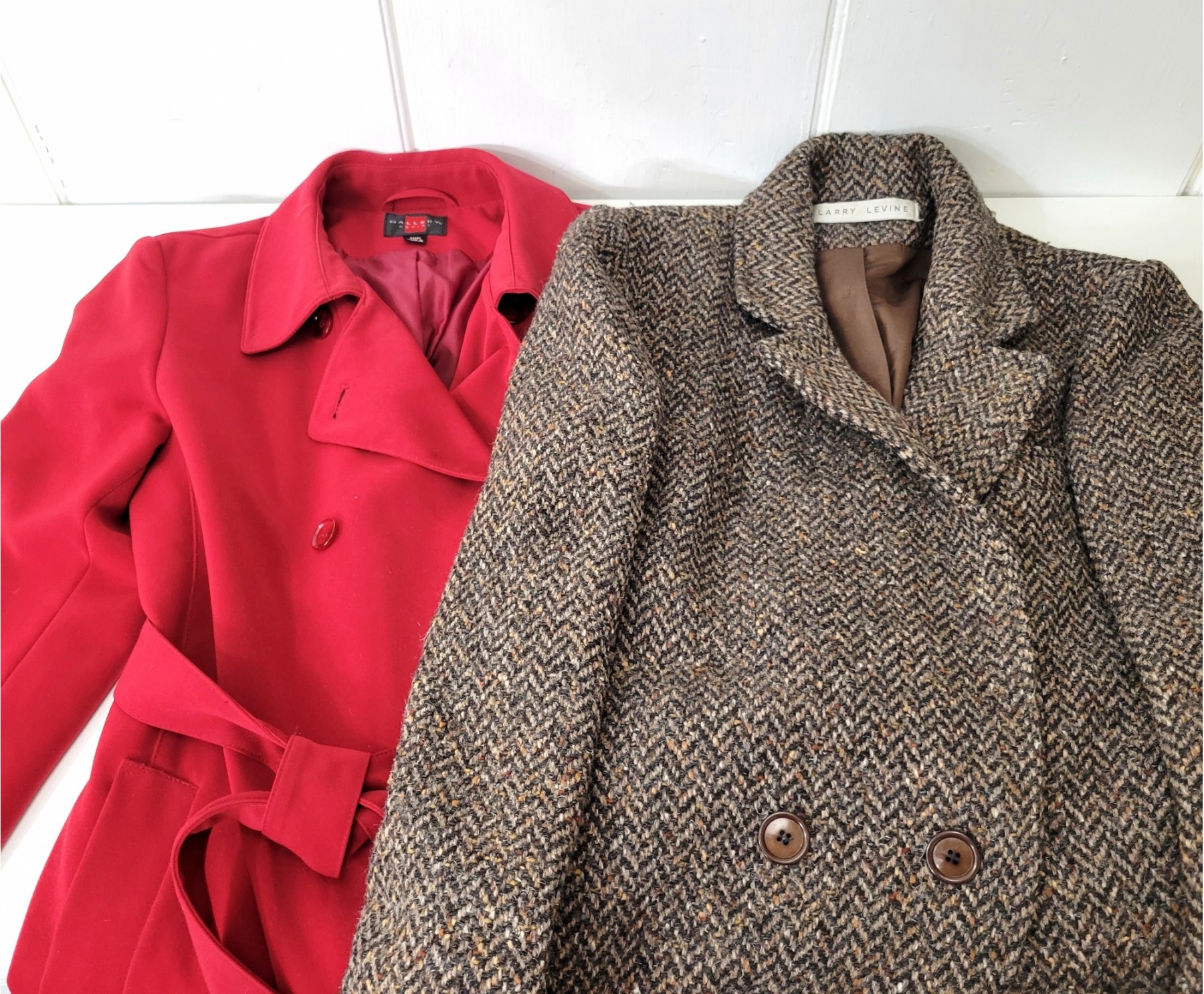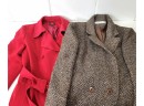 Two nice quality women's coats. The red trench coat is Gallery Petites size 10P,