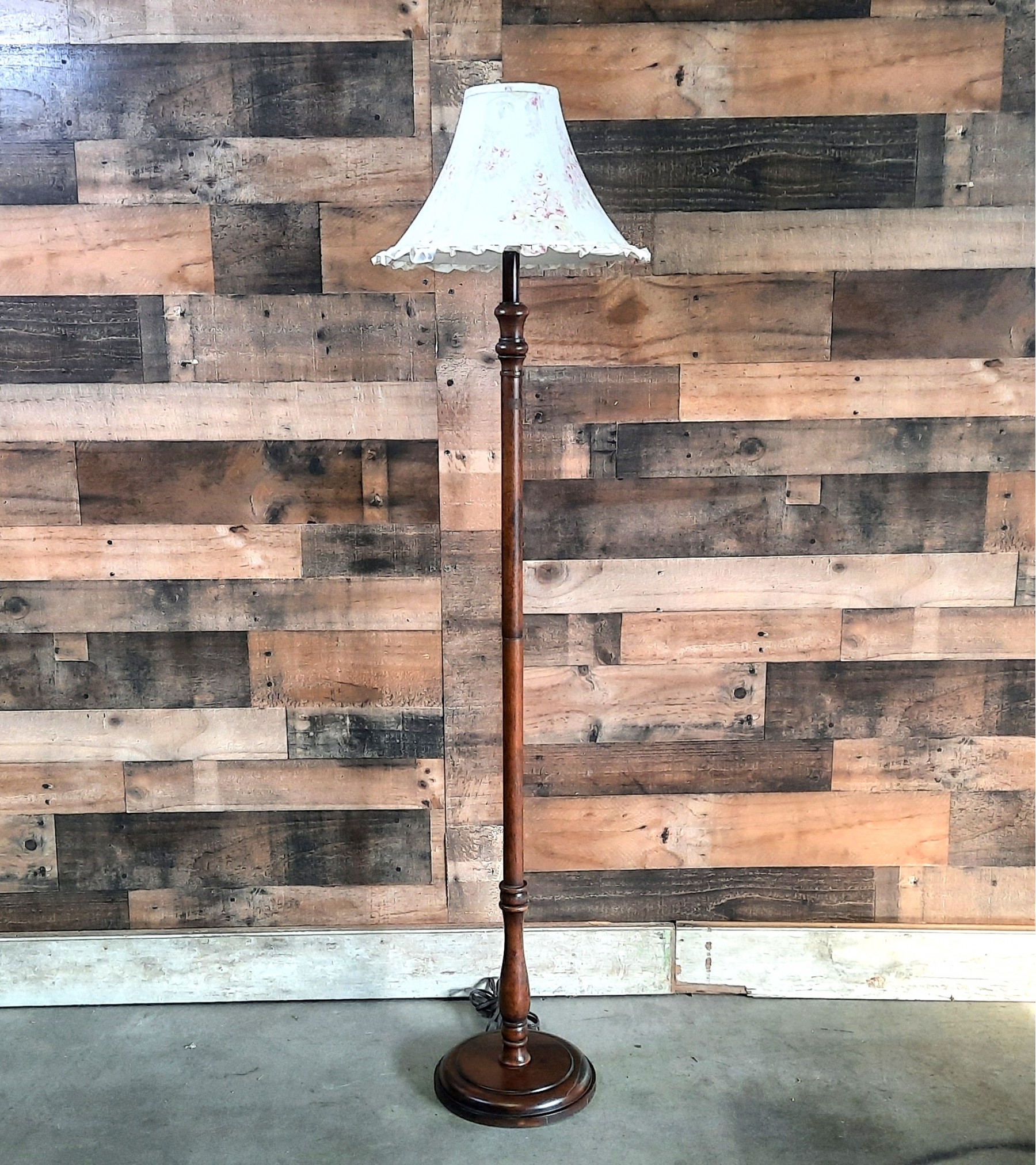 Wood Floor Lamp With Floral Shade
