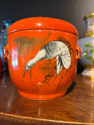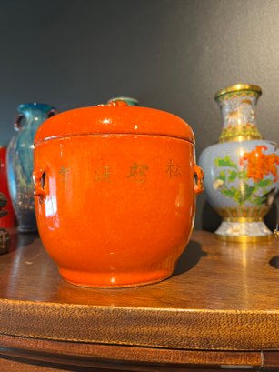 Ceramic Box Red Chupu Kamcheng Covered Jar Pot Chinese Porcelain Old