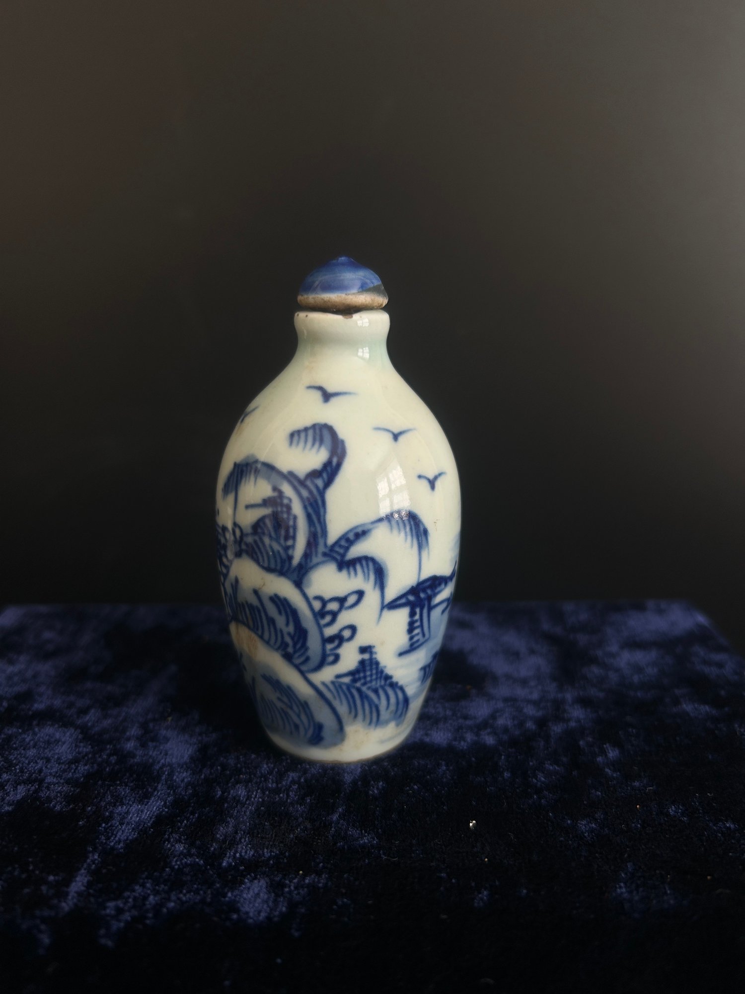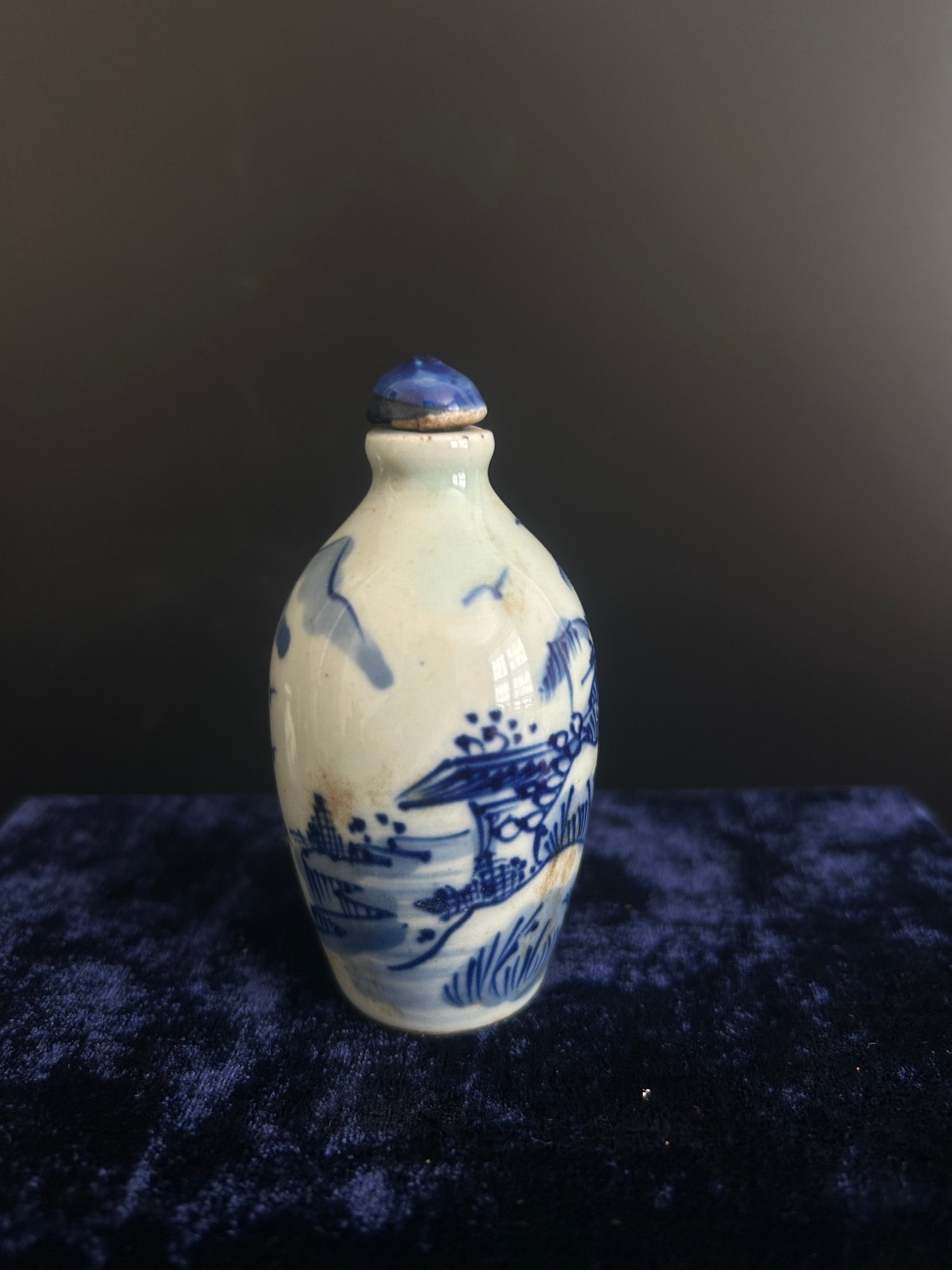 Chinese Blue & White Porcelain Snuff Bottle With Landscape Decoration