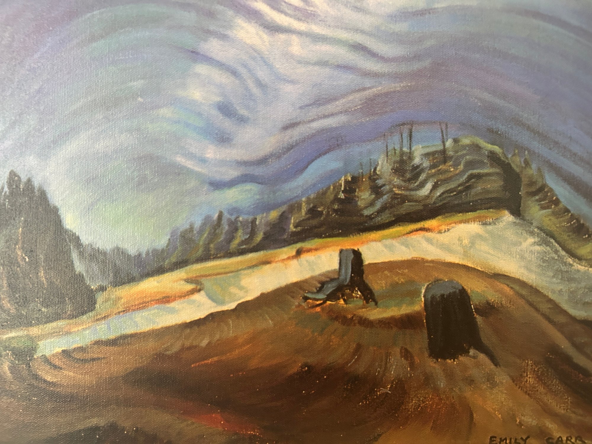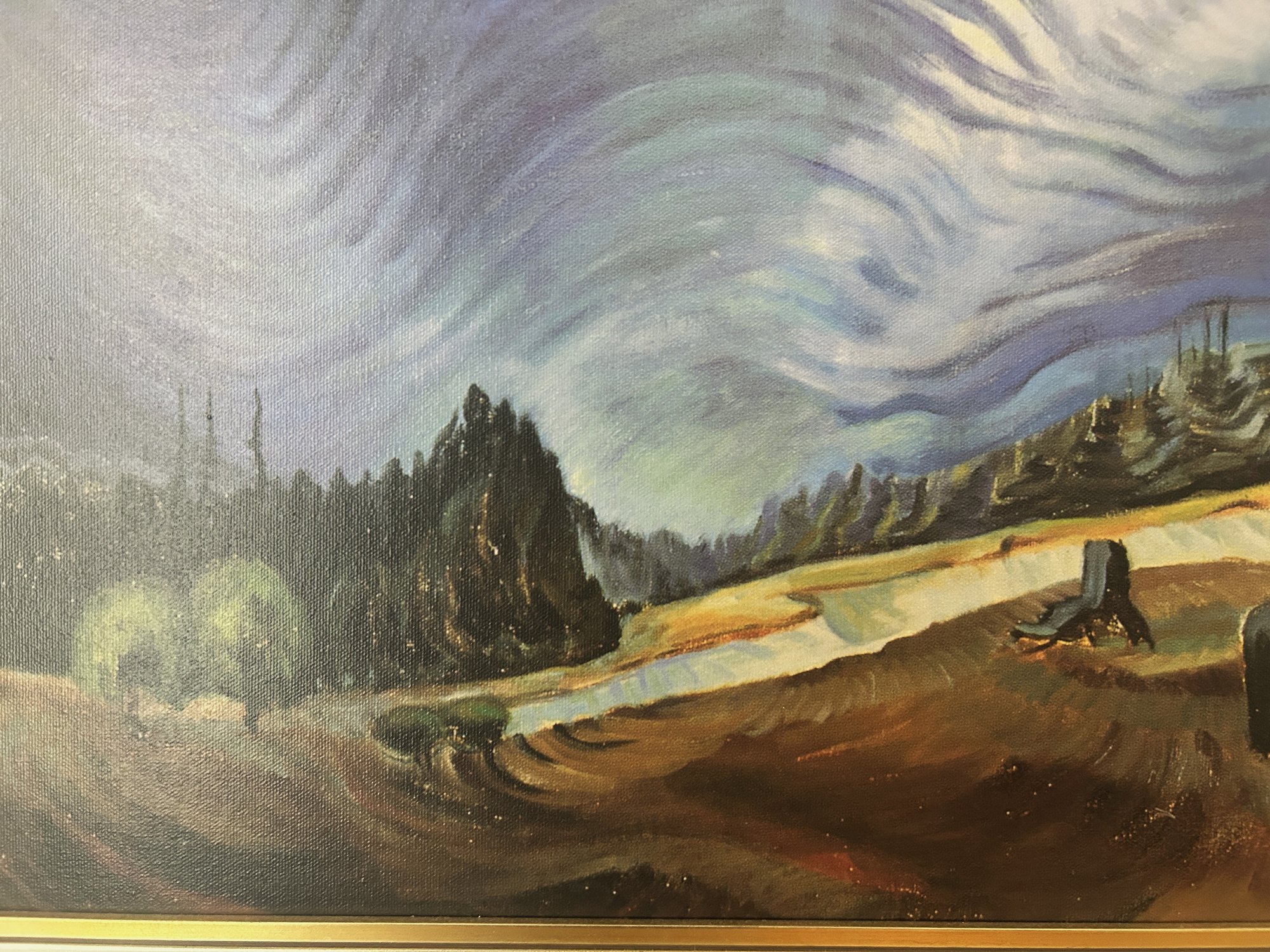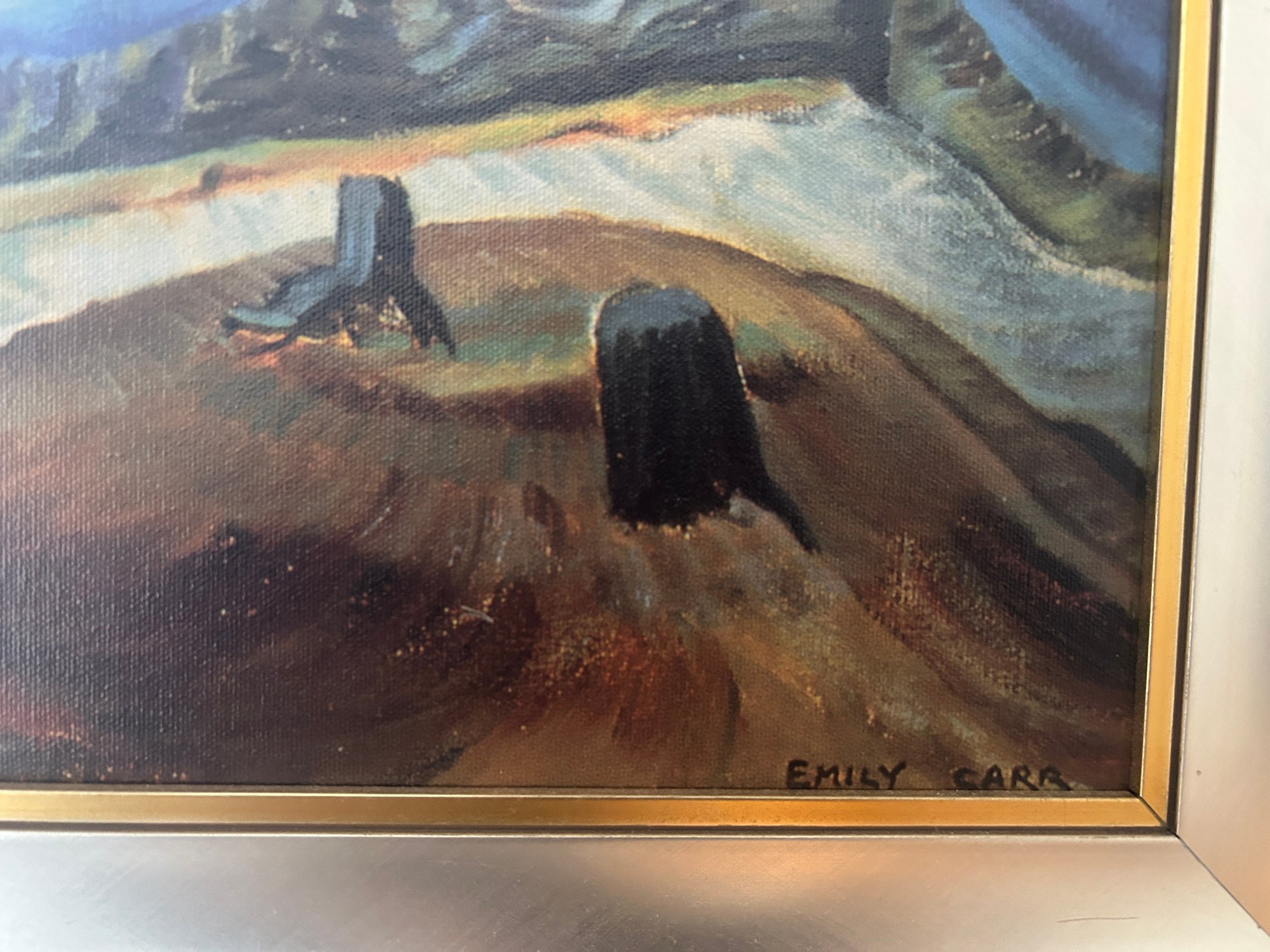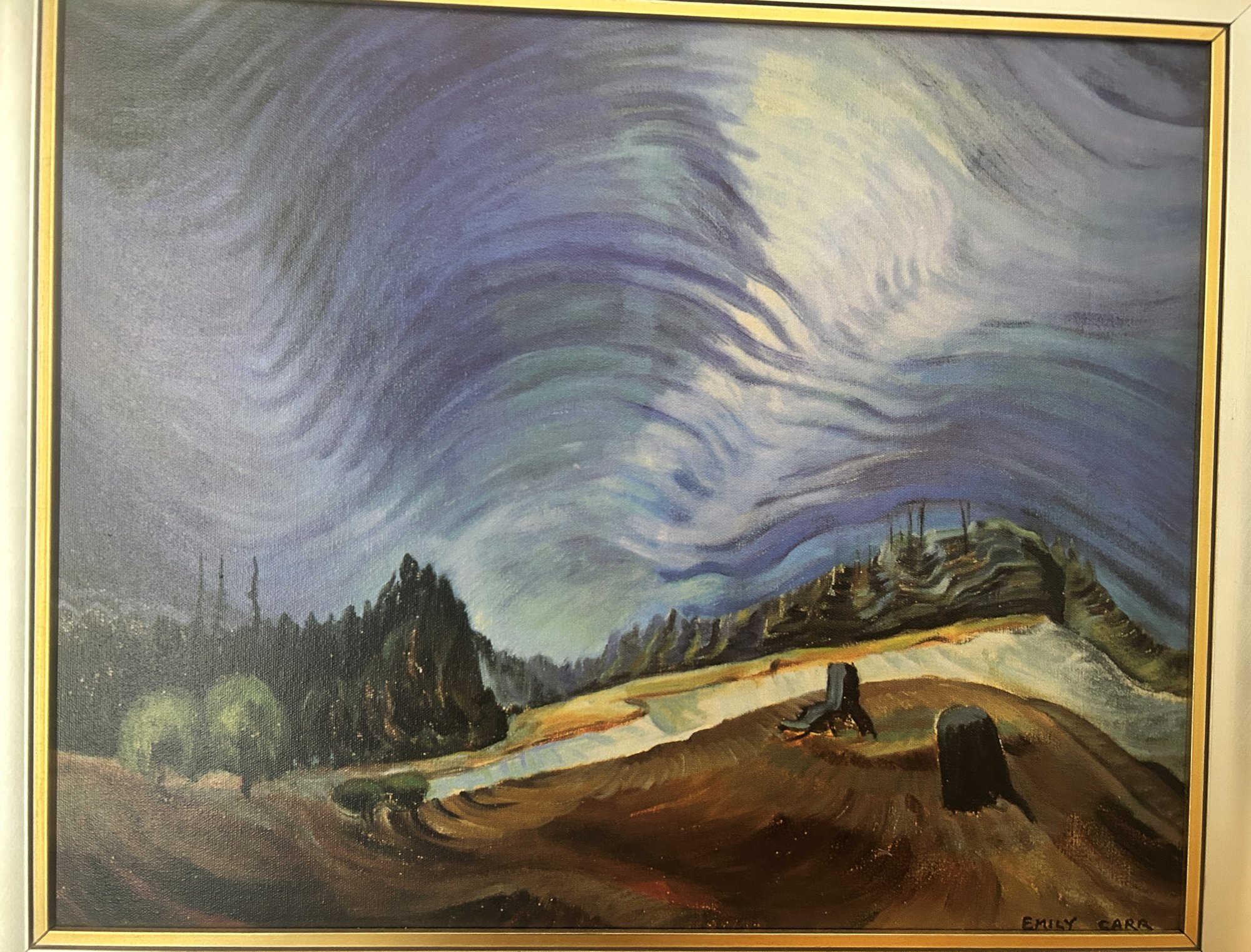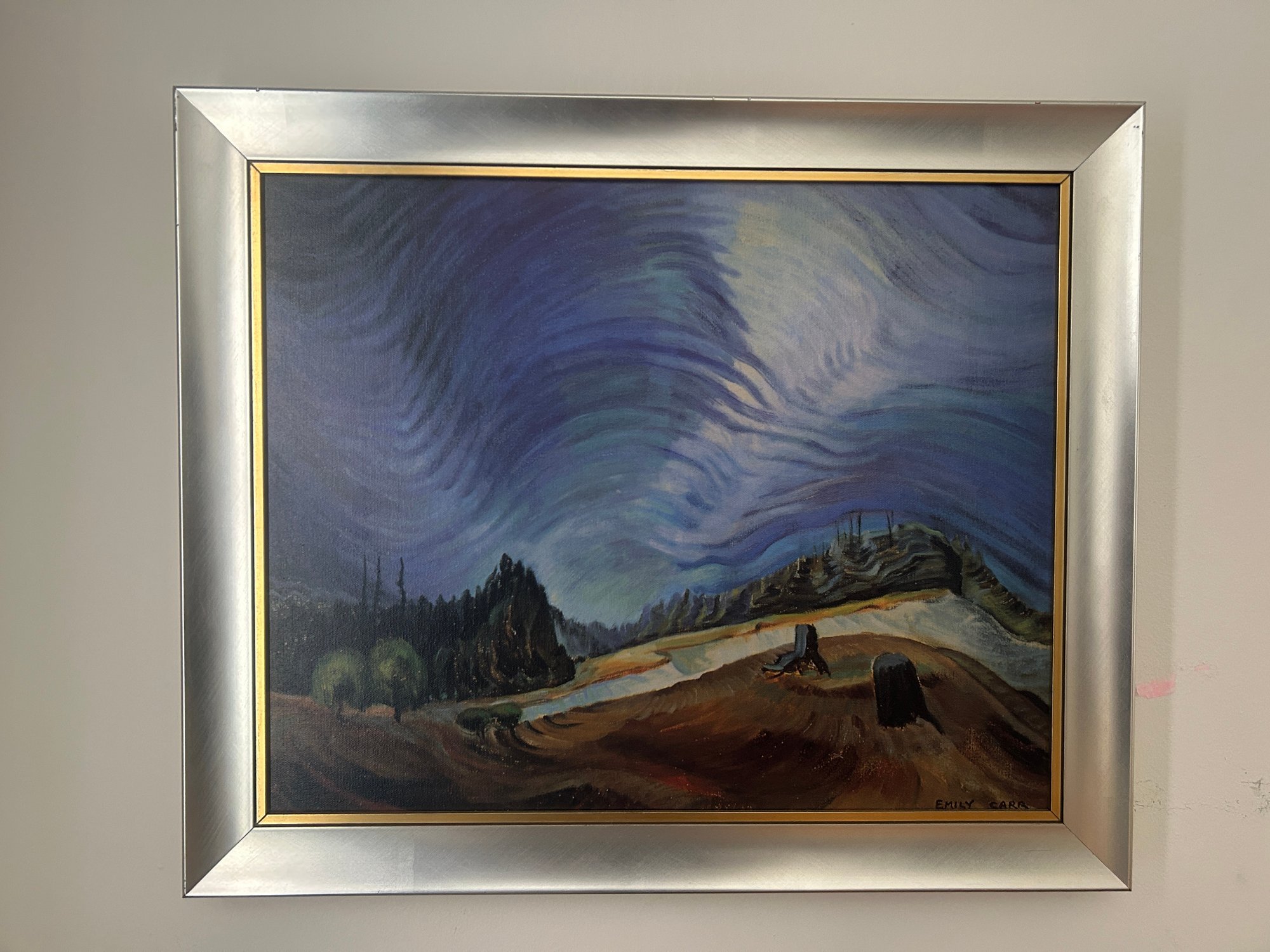 A framed decorative reproduction of the famous Canadian painting "Above the Gravel Pit" (1937) by Emily Carr.