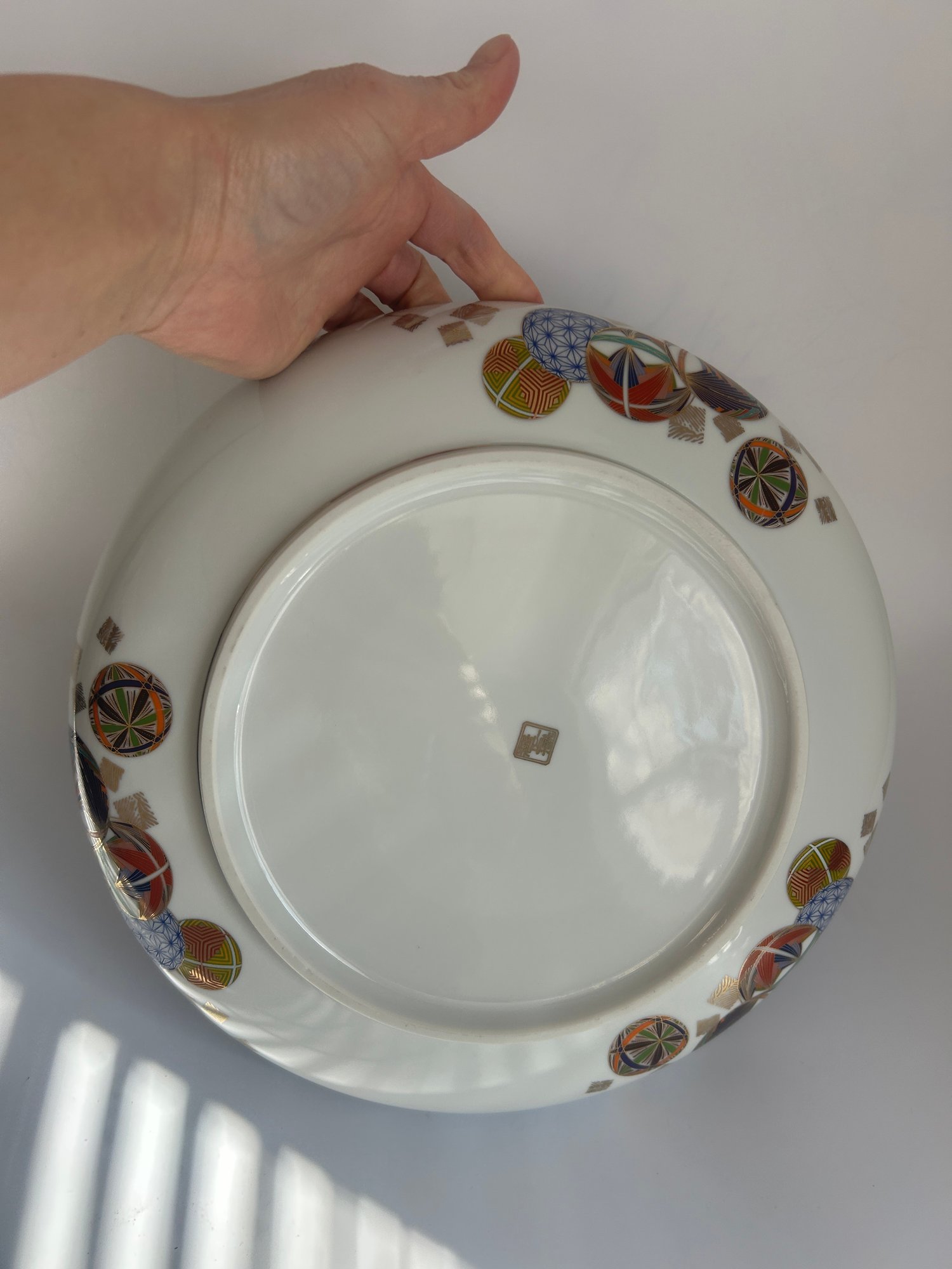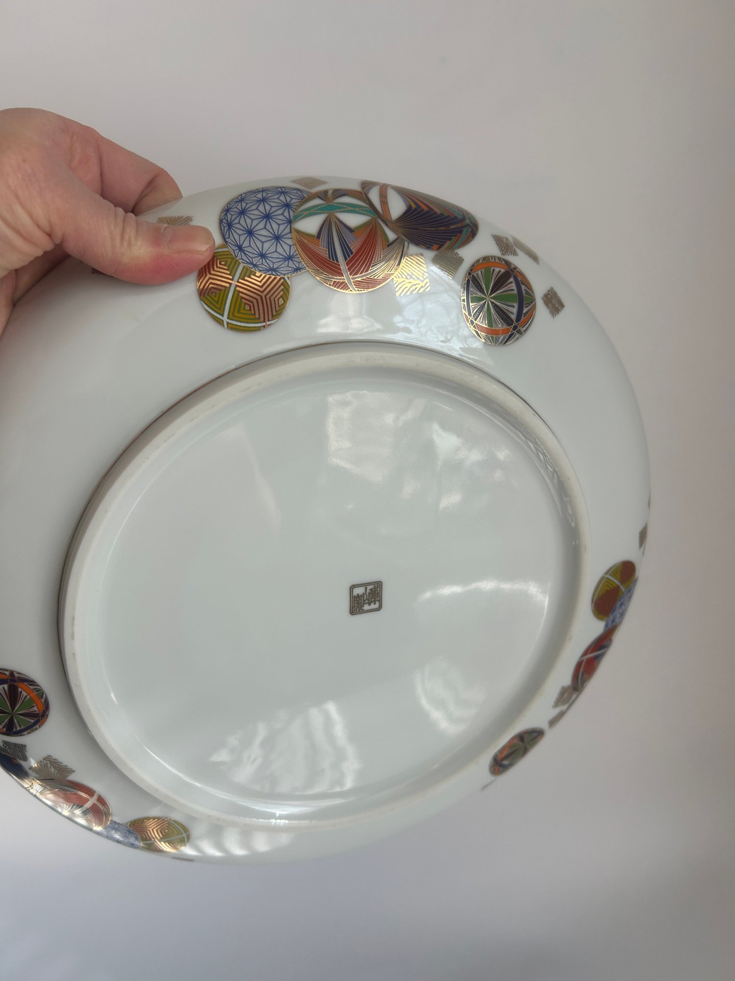 Japanese Porcelain Decorative Plate With Geometric Orbs And Gilt Rim