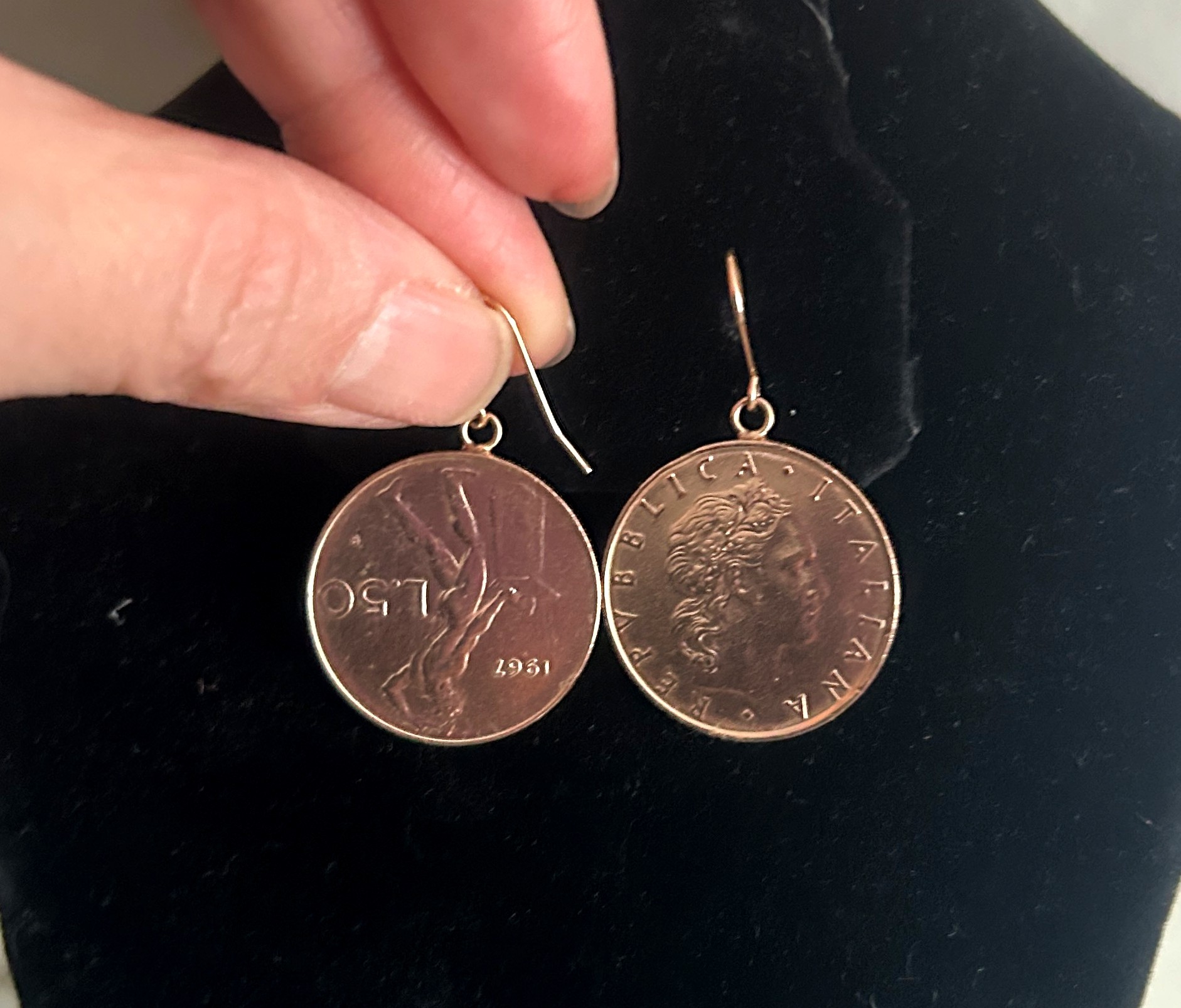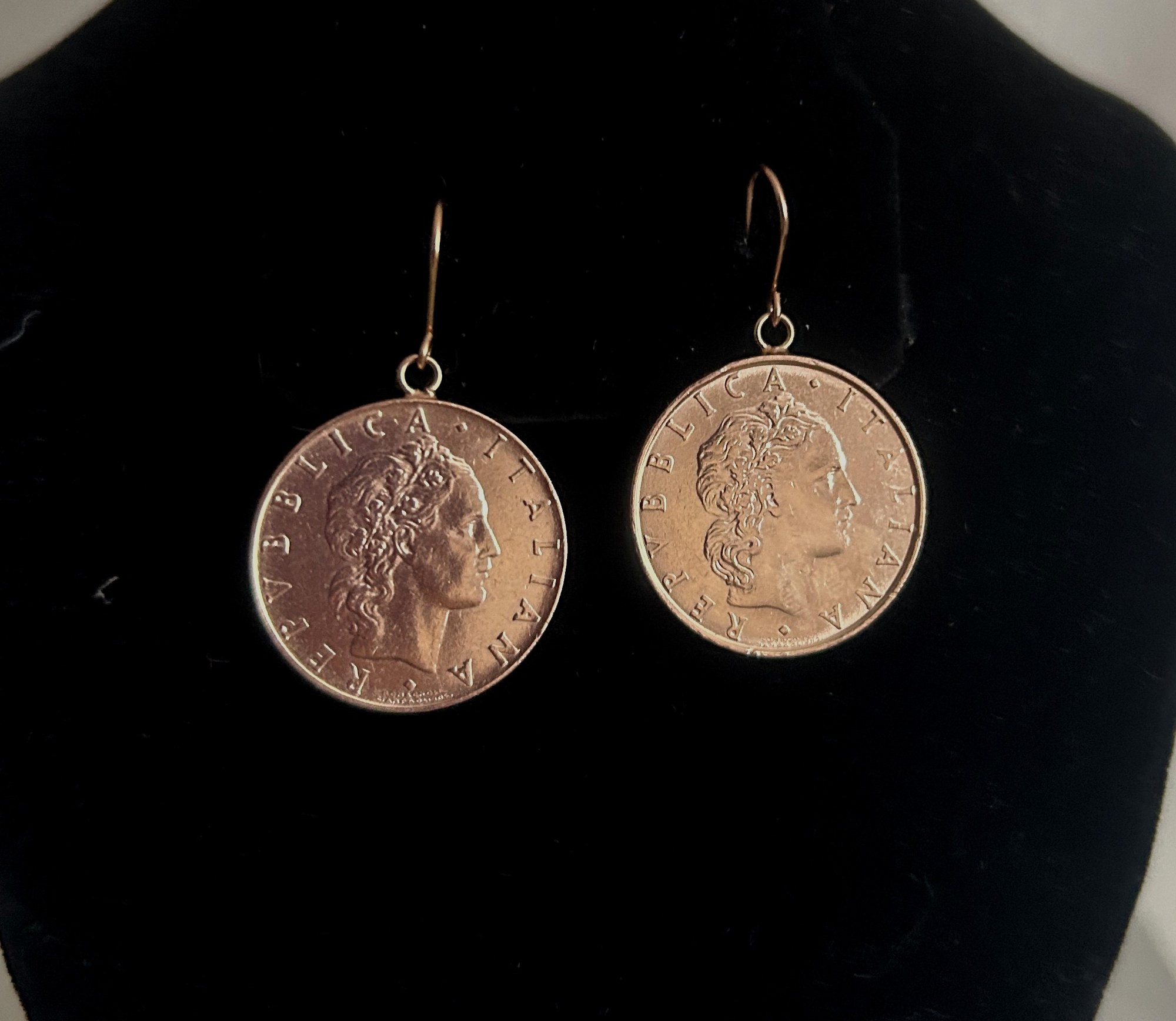 Italian Lire Coin Dangle Earrings