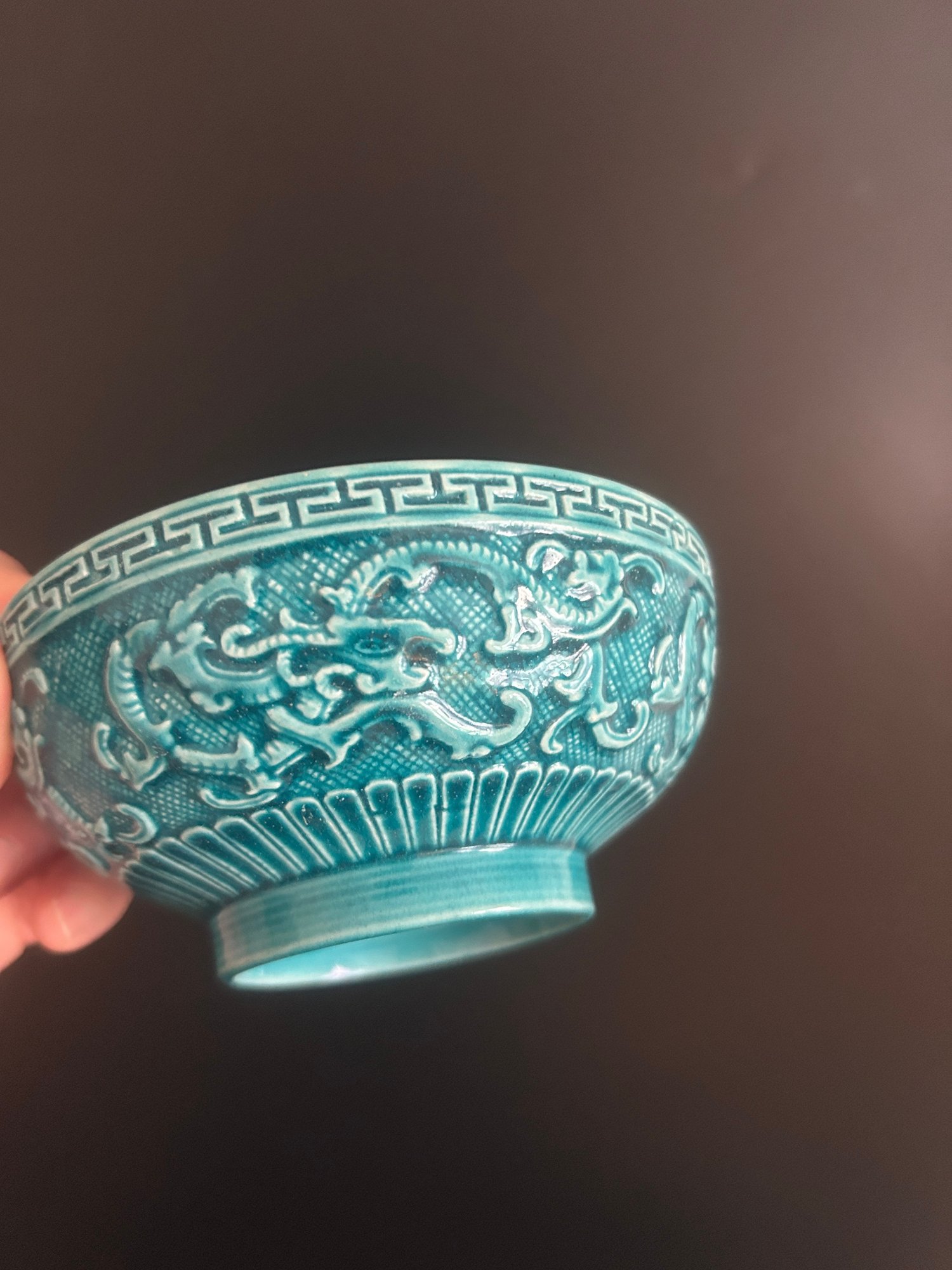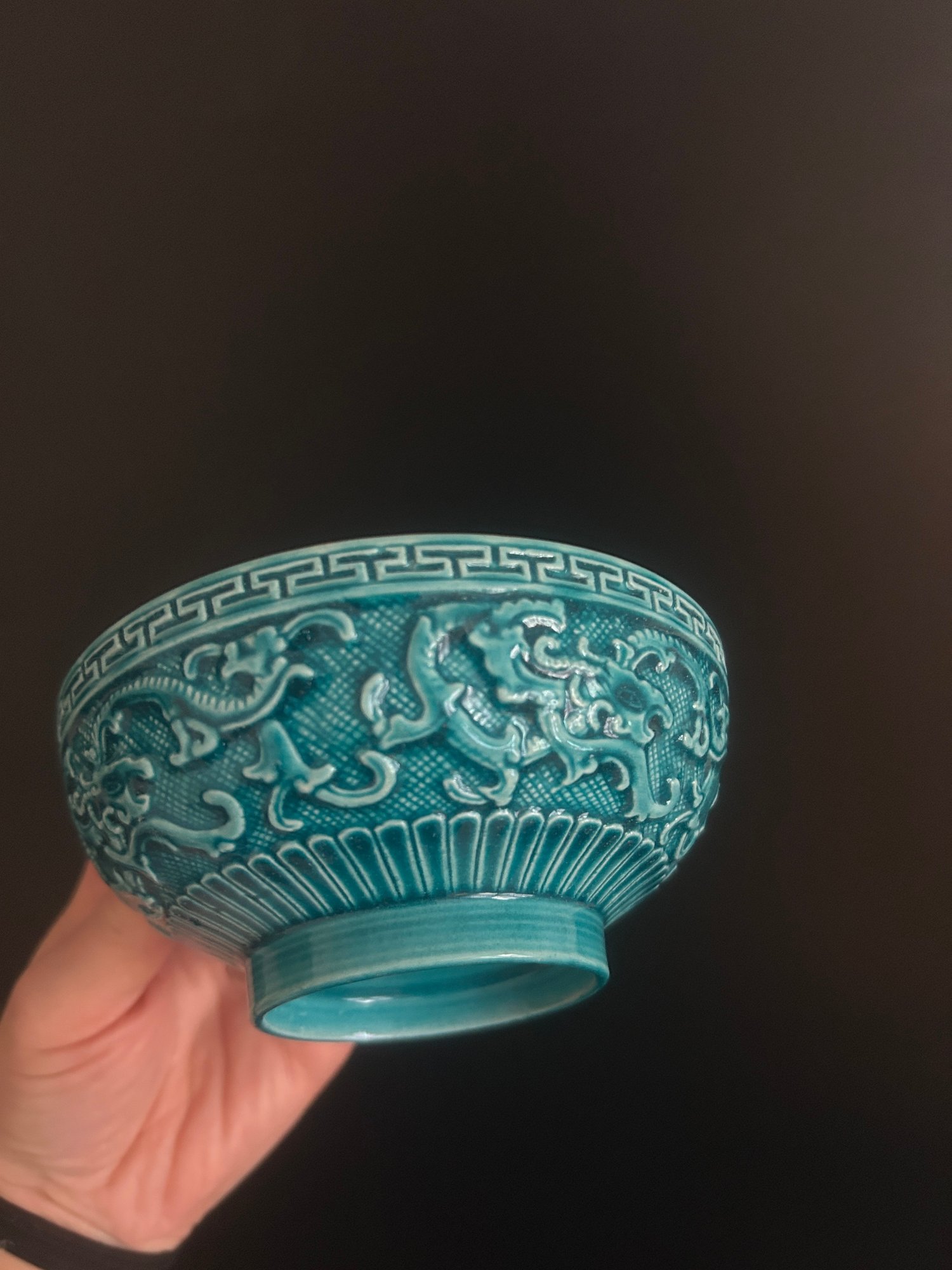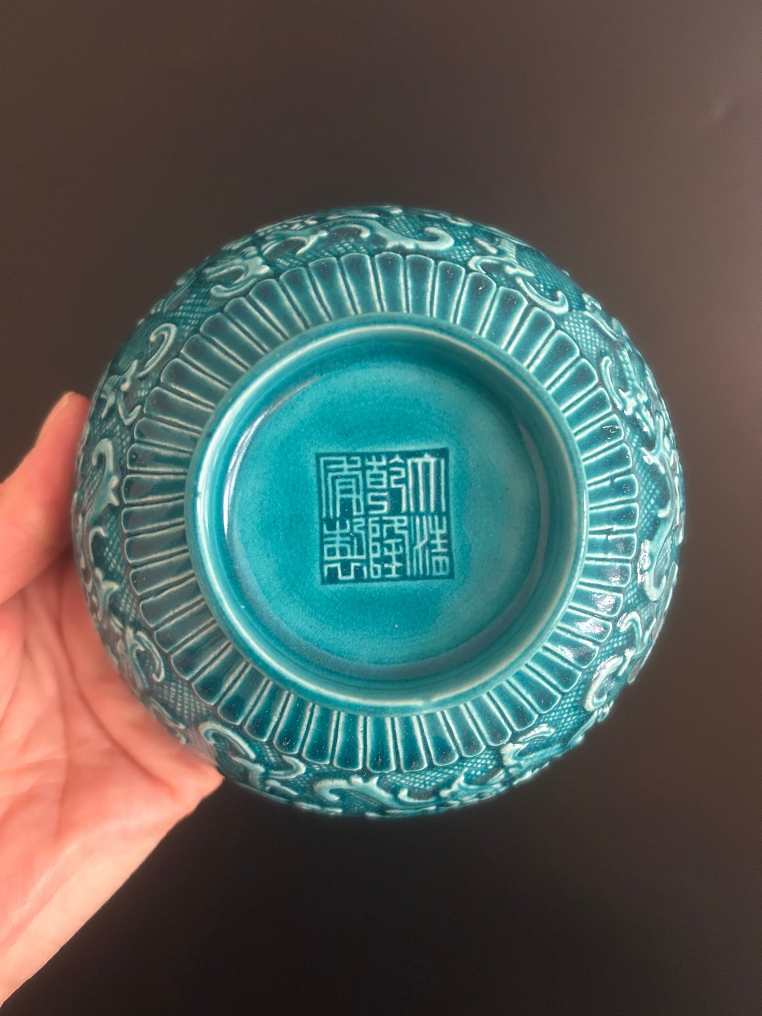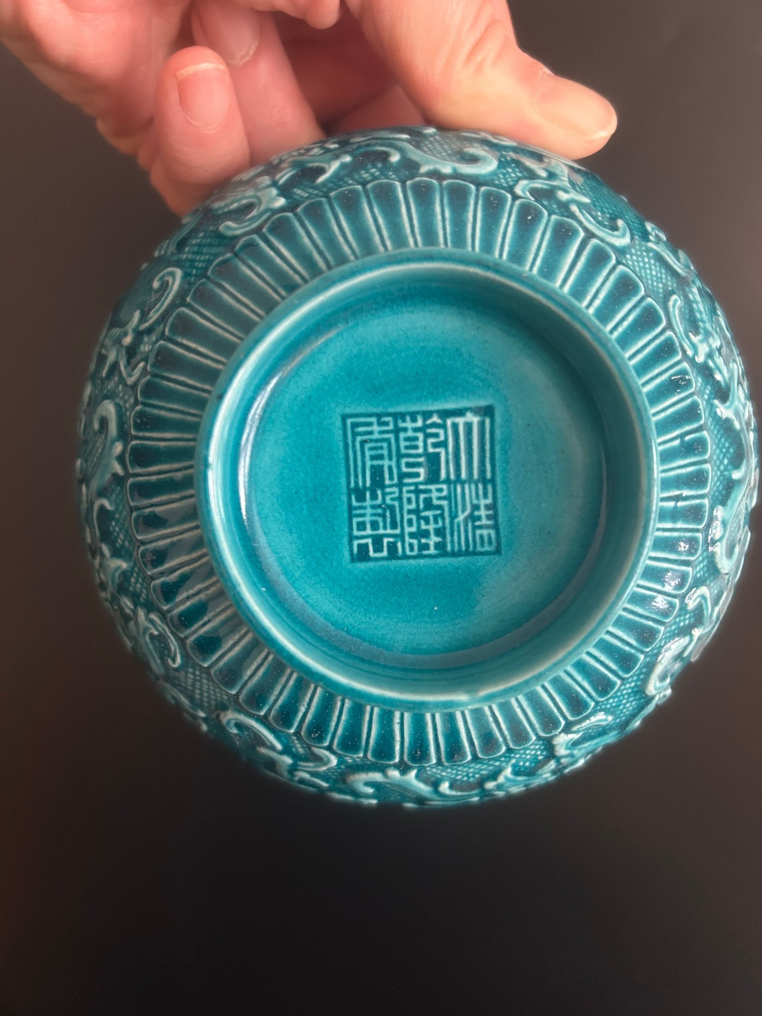 Turquoise Glazed Chinese Porcelain Bowl Qianlong Mark