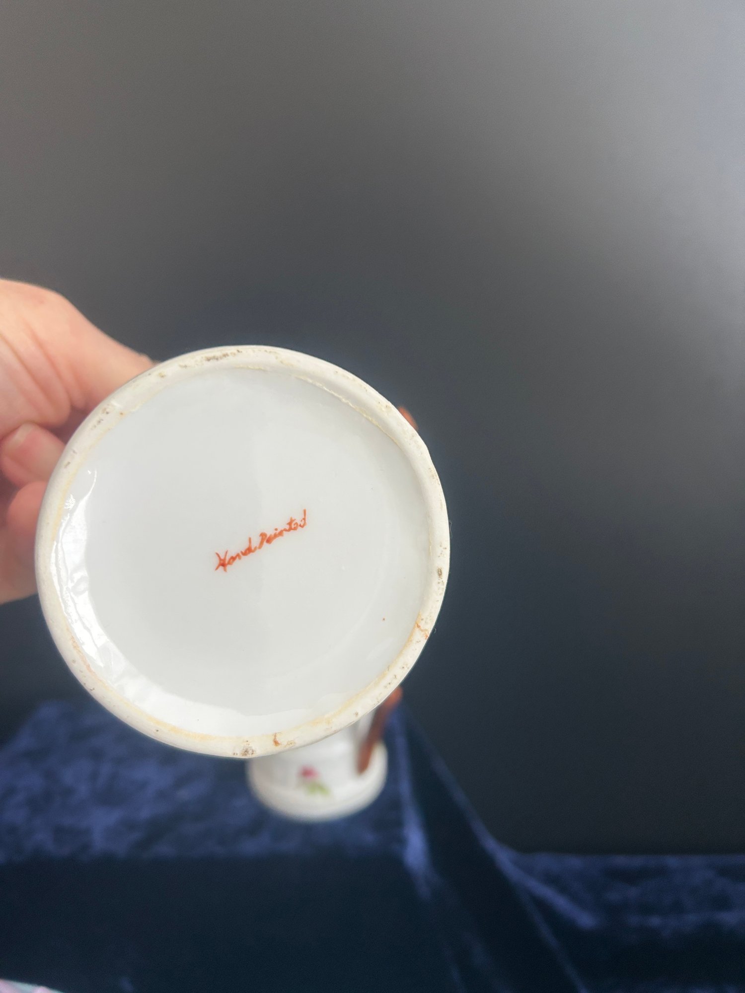 Vintage Hand Painted Floral Creamer. Barrel Shape With A Twig Handle