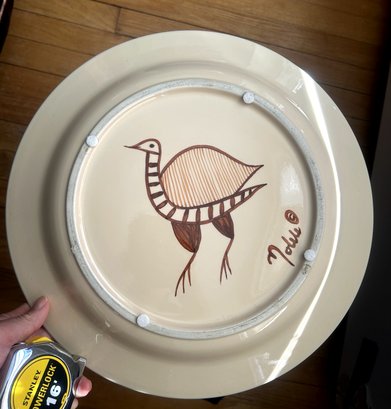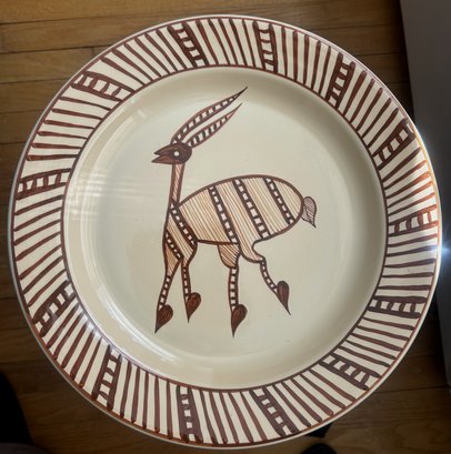 Wynne Noble Signed Pottery Large Dinner Plate Horned Antelope/Deer Rustic