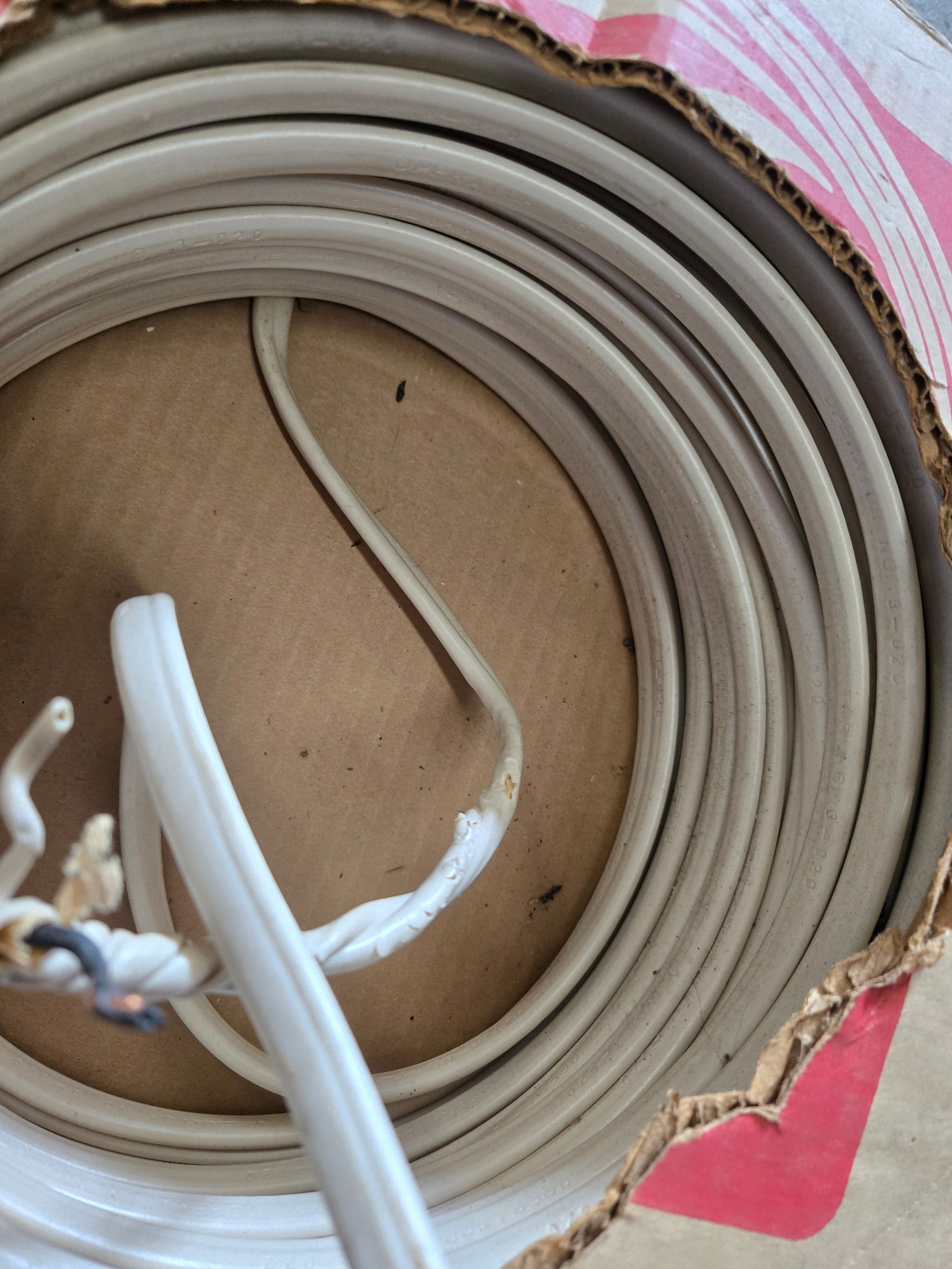 250-foot roll of 14-2 NM-B (Non-Metallic Sheathed) electrical cable,commonly known as Romex, manufactured by Southwire.
