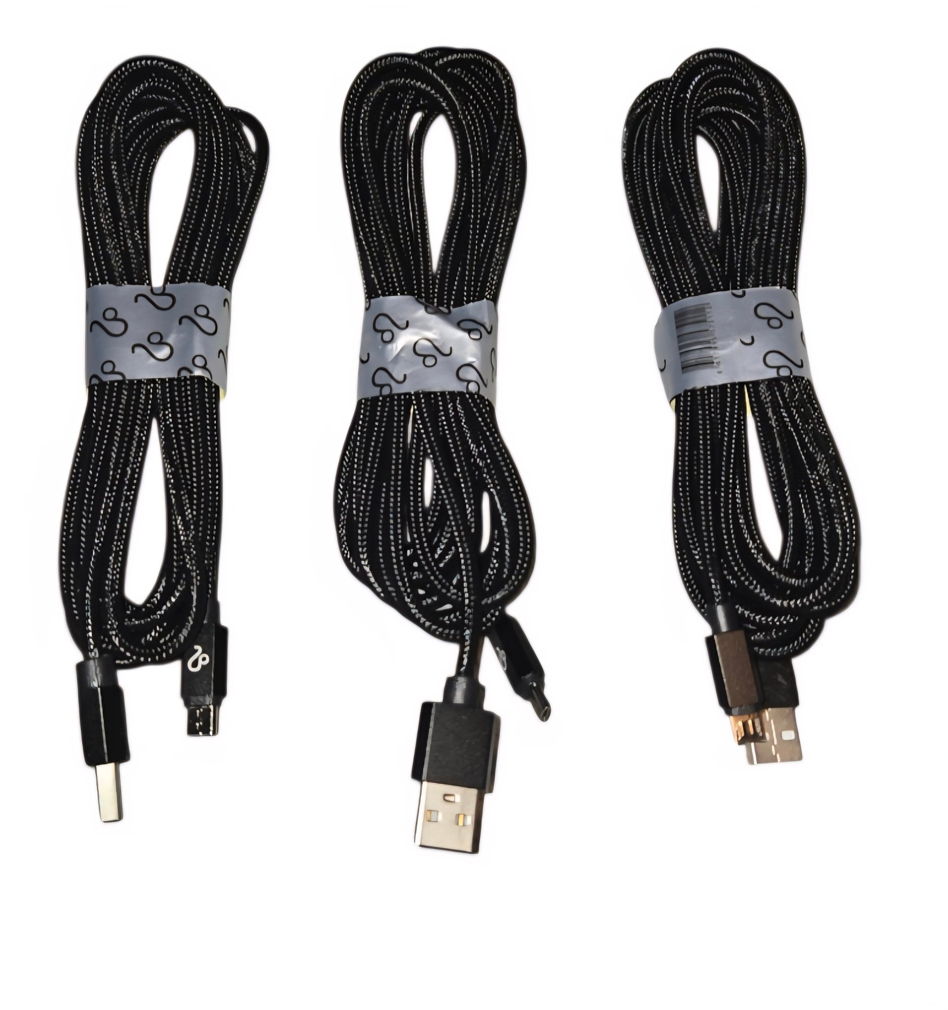 3- New Stoneleo USB to Micro USB Nylon Braided charging cords. 10ft long
