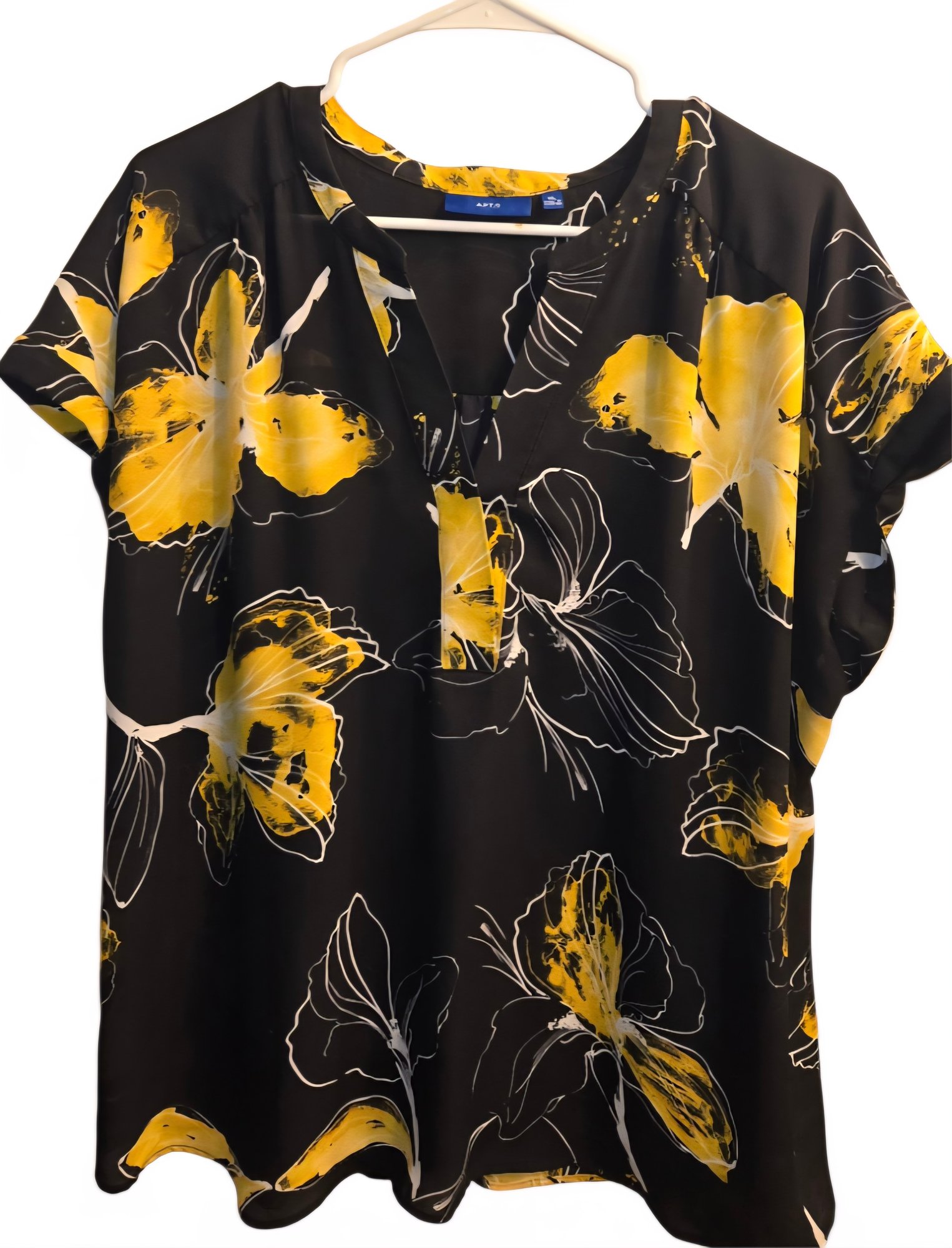 Yellow and Black women's Apt 9 floral blouse size XL.