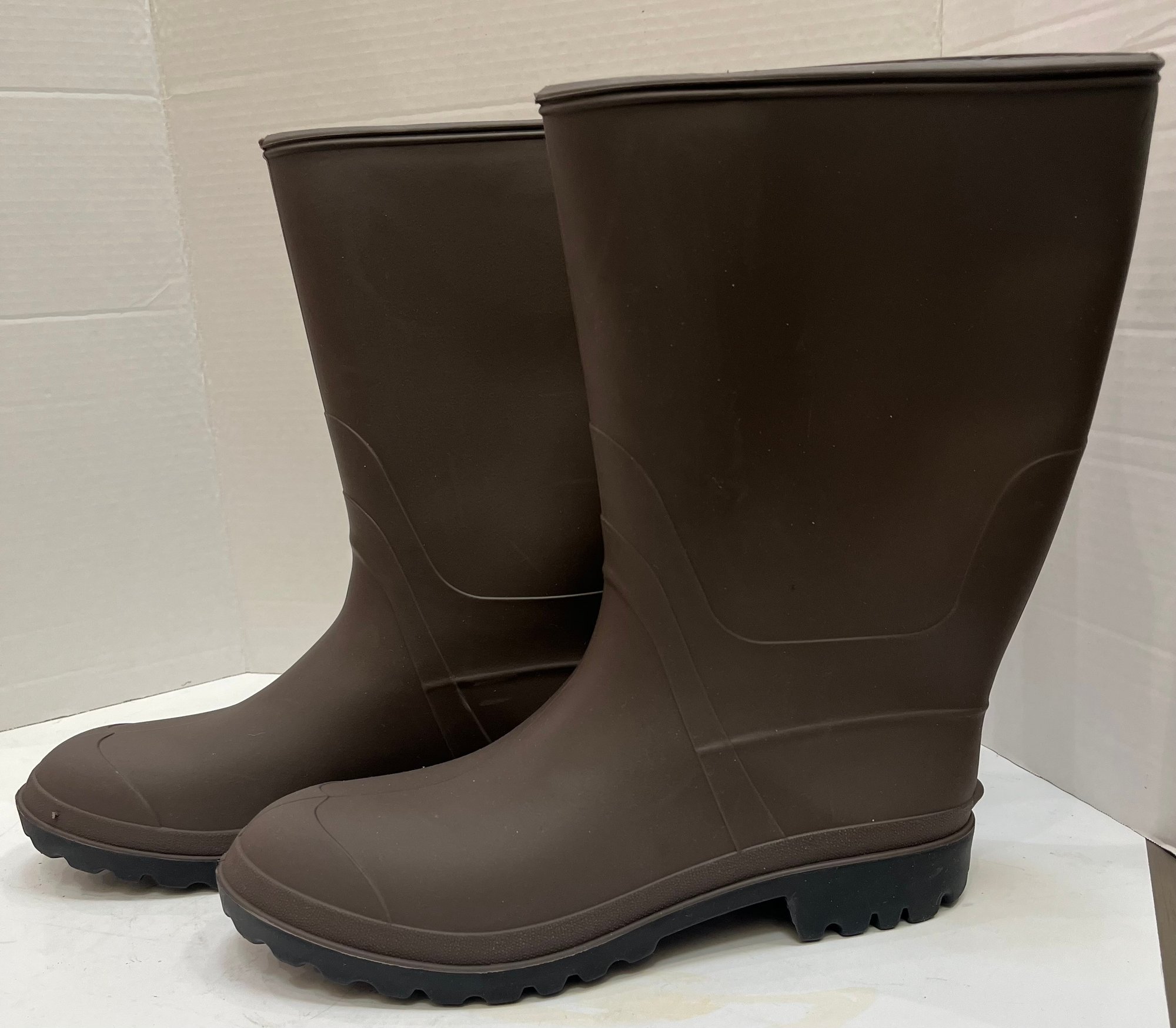 Two pair boots. Brown, waterproof boots size 13 and black Sorel boots size 14, both in great condition.
