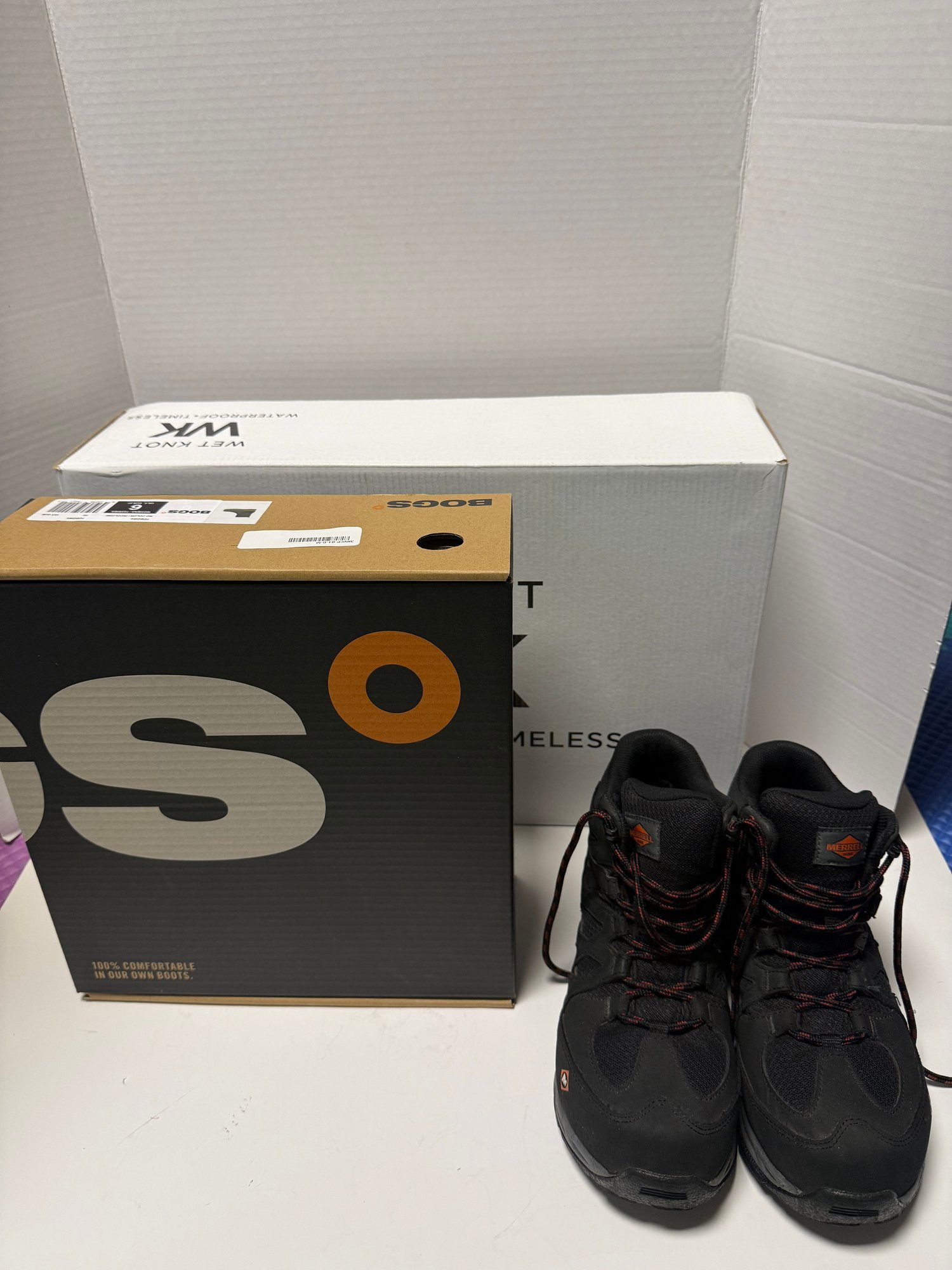 This lot includes a pair of Holly booties size 6, a pair of Size 7 M boots, and a pair of Wet Knot Size 6 boots. All items pre owned.